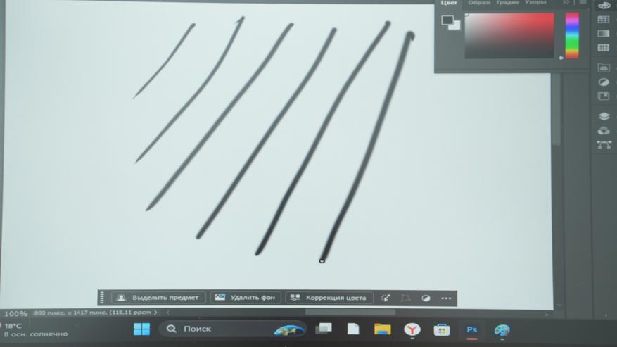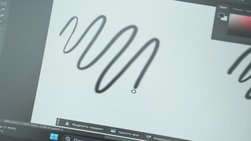 Что касается функциональности рисования, система в целом справляется со своими задачами удовлетворительно. Наблюдаемые особенности — незначительное смещение позиционирования в периферийных областях экрана и легкое дрожание при медленном проведении диагональных линий — носят ситуативный характер и не оказывают заметного влияния на большинство сценариев использования. При работе в нормальном режиме эти особенности практически не влияют на качество штриха.