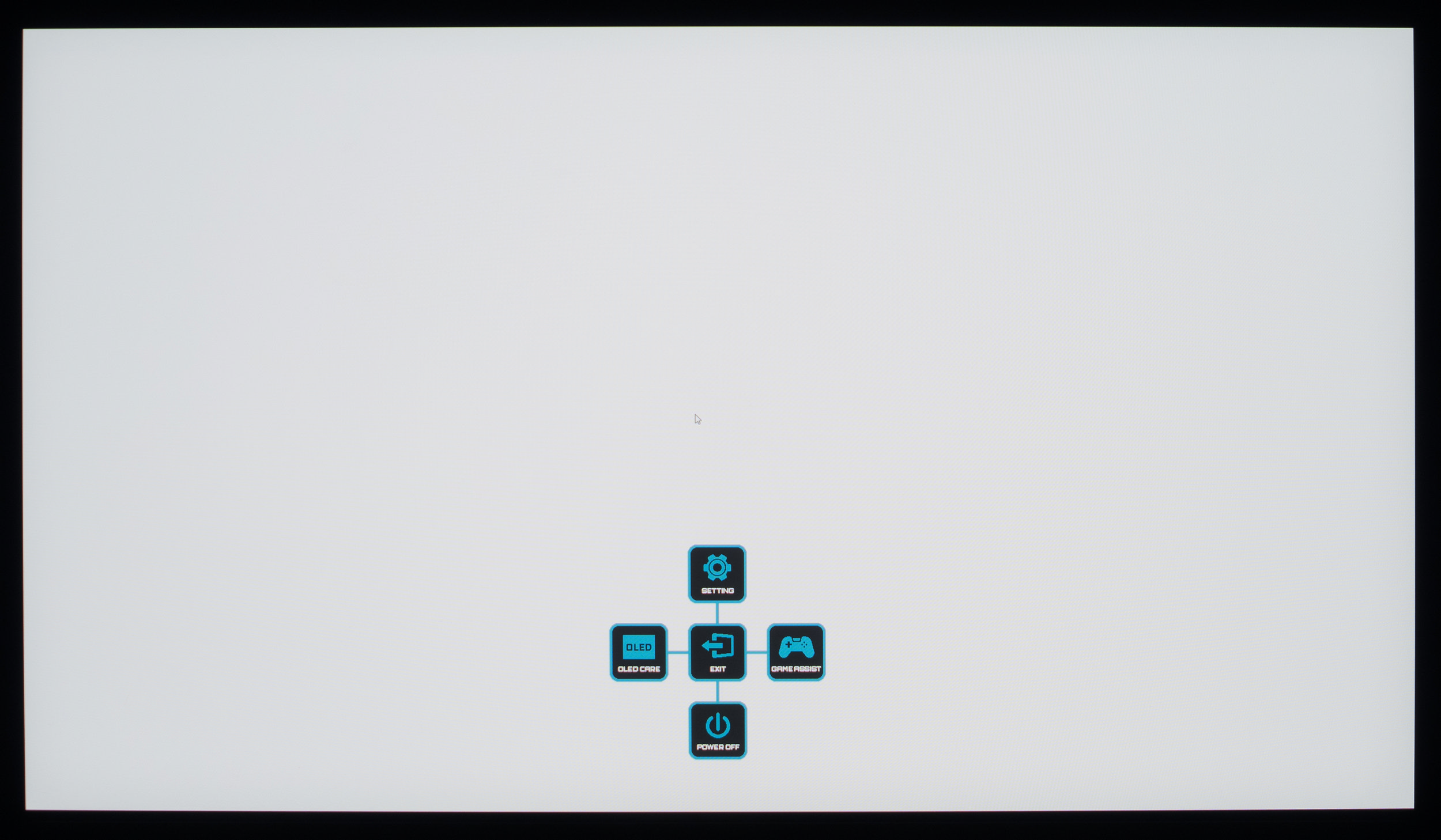 Сам джойстик используется не только для перемещения по основному меню. Достаточно одного нажатия, чтобы внизу экрана появилась компактная панель быстрого доступа. Через неё можно сразу перейти к базовым настройкам, выключить дисплей, открыть блок с игровыми функциями или зайти в раздел OLED Care. Для OLED-модели это один из наиболее важных пунктов меню, поскольку именно там собраны механизмы, связанные с профилактикой износа панели и поддержанием её стабильной работы в долгосрочной перспективе.