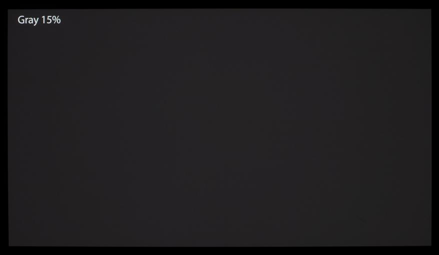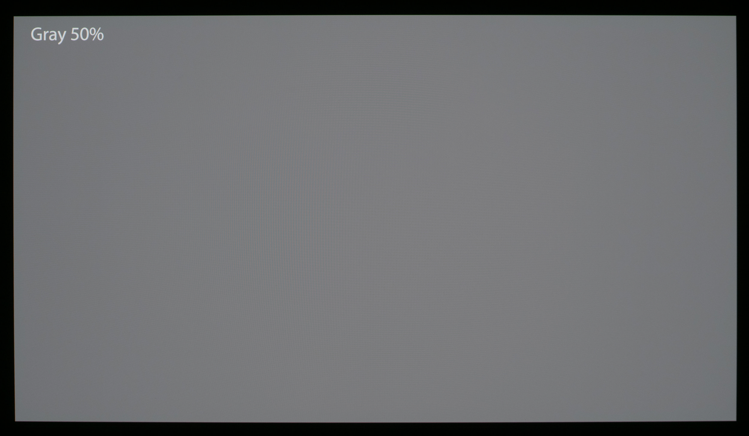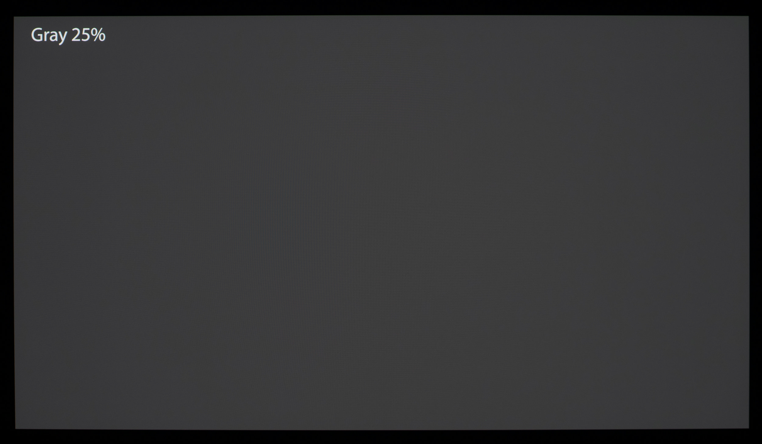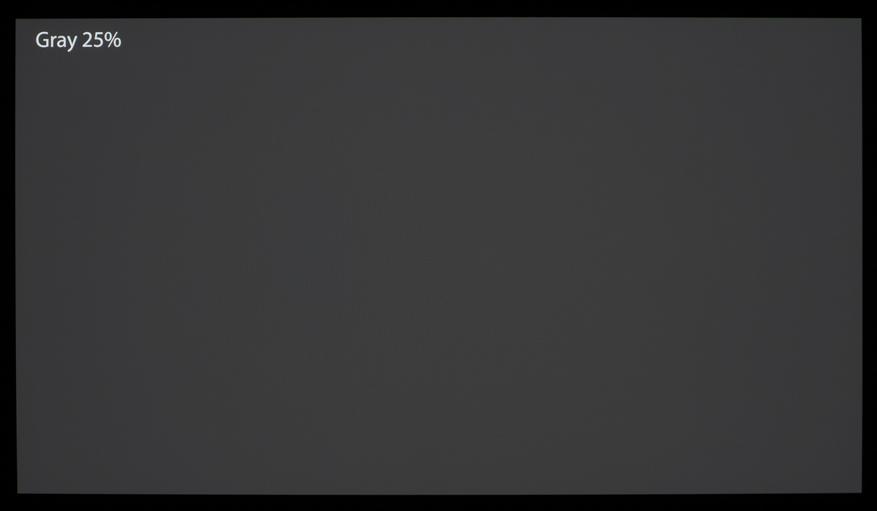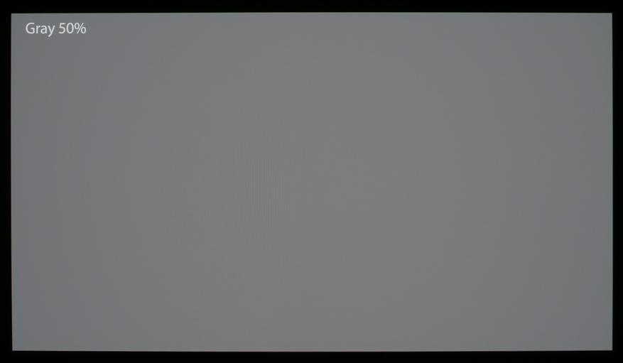 На белом фоне экран выглядит очень ровно: ни по яркости, ни по оттенку заметных проблем не наблюдается. То же самое подтверждают и снимки серых заливок, сделанные в затемнённой обстановке с поправкой экспозиции и последующей обработкой для лучшей наглядности. Даже там серьёзных недостатков не видно. Лишь на самых тёмных серых полутонах можно уловить едва заметный динамический шум, но это уже особенность самой OLED-технологии, а не конкретный дефект панели.