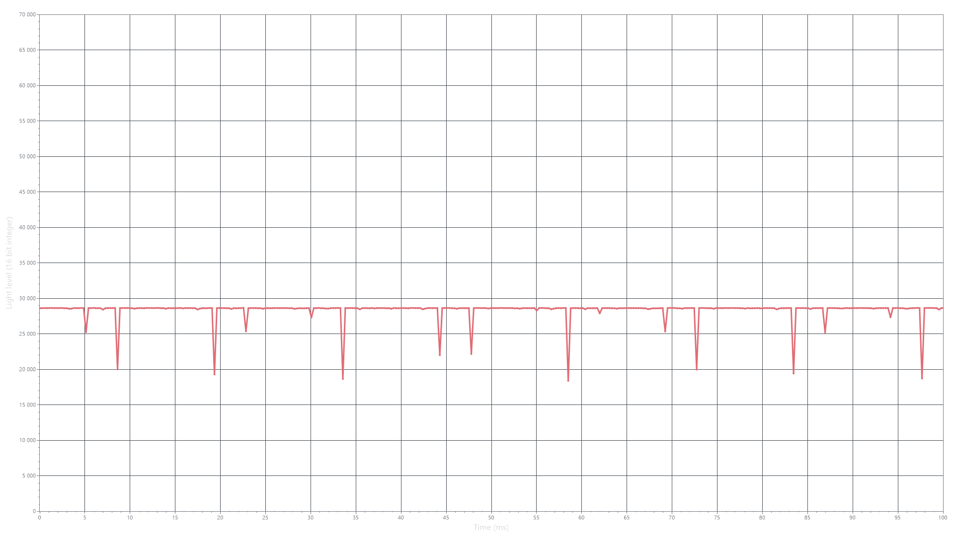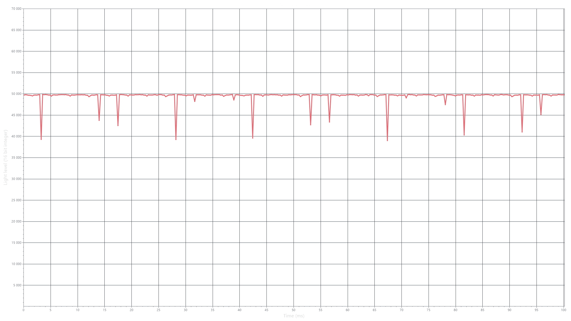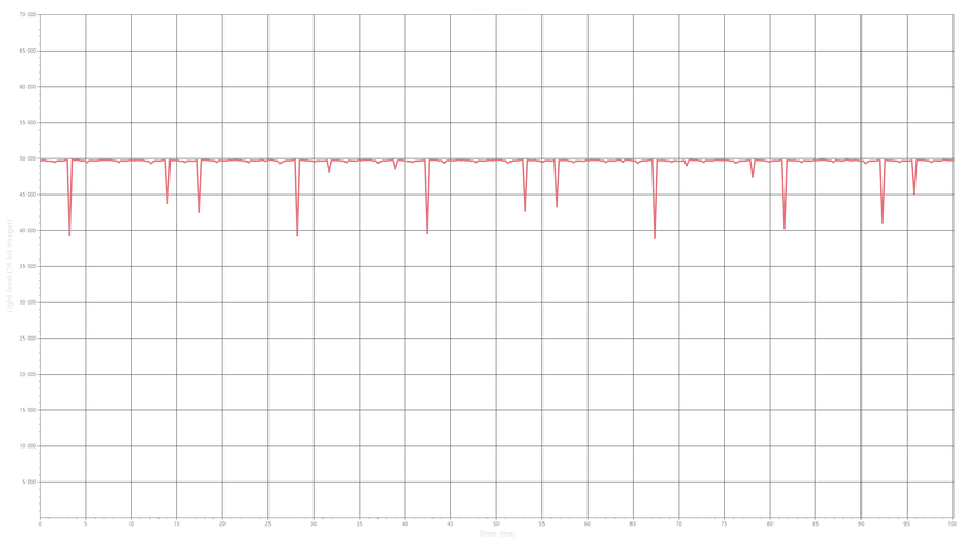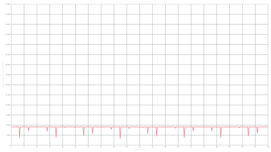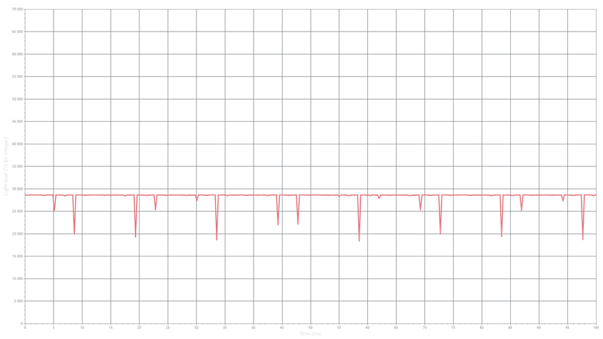 Небольшие пульсации у панели присутствуют на любом уровне яркости, но речь идёт о слабом мерцании на частоте самого монитора. На практике такие колебания считаются допустимыми и не выглядят как фактор, который должен заметно повышать утомляемость глаз. Тем не менее для любых OLED это важная особенность, о которой стоит знать заранее.