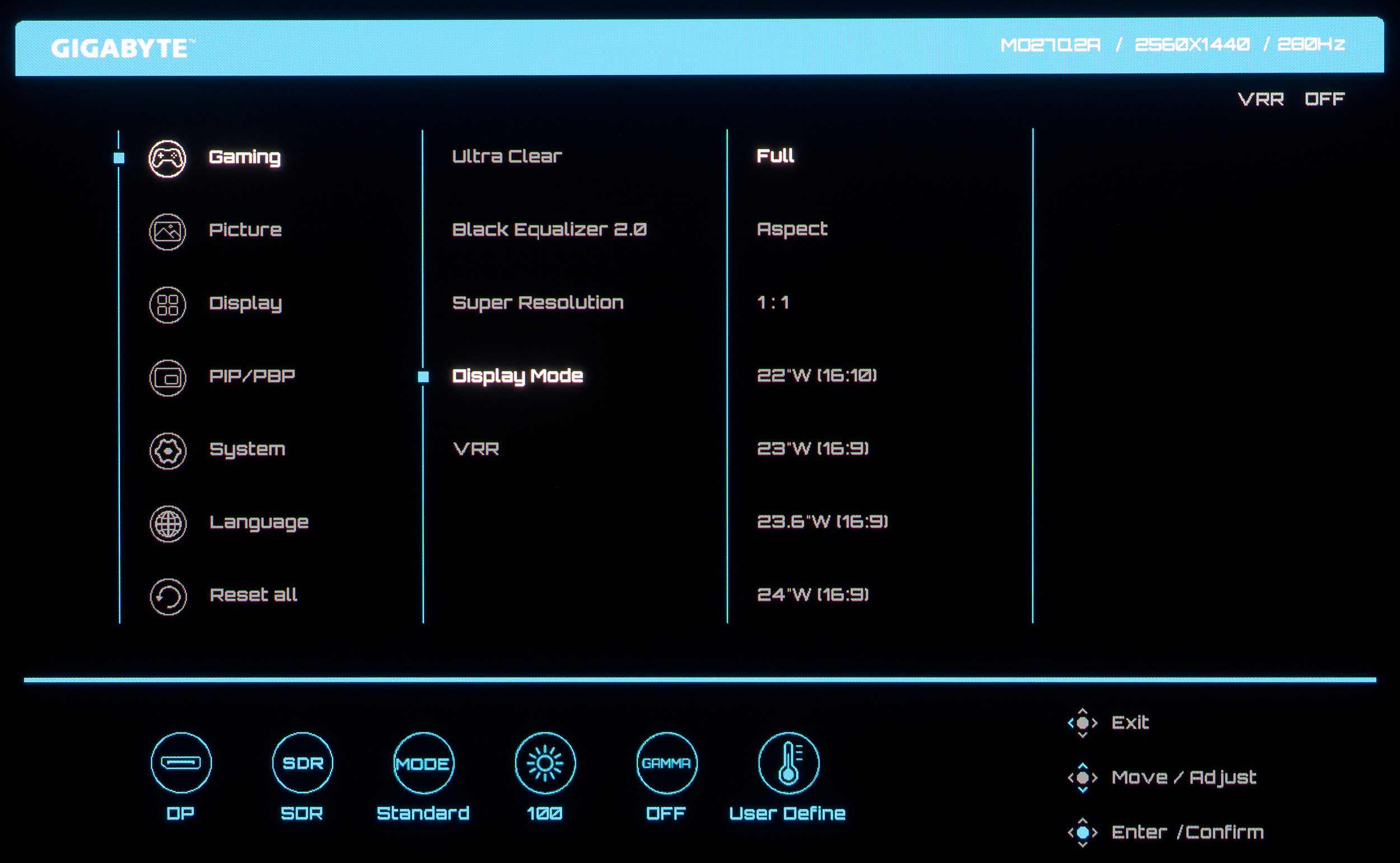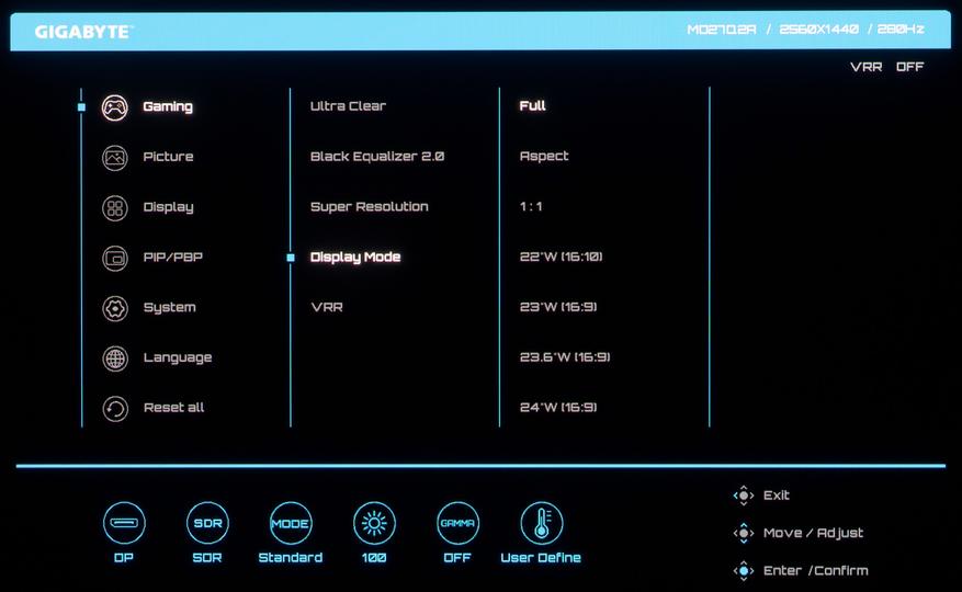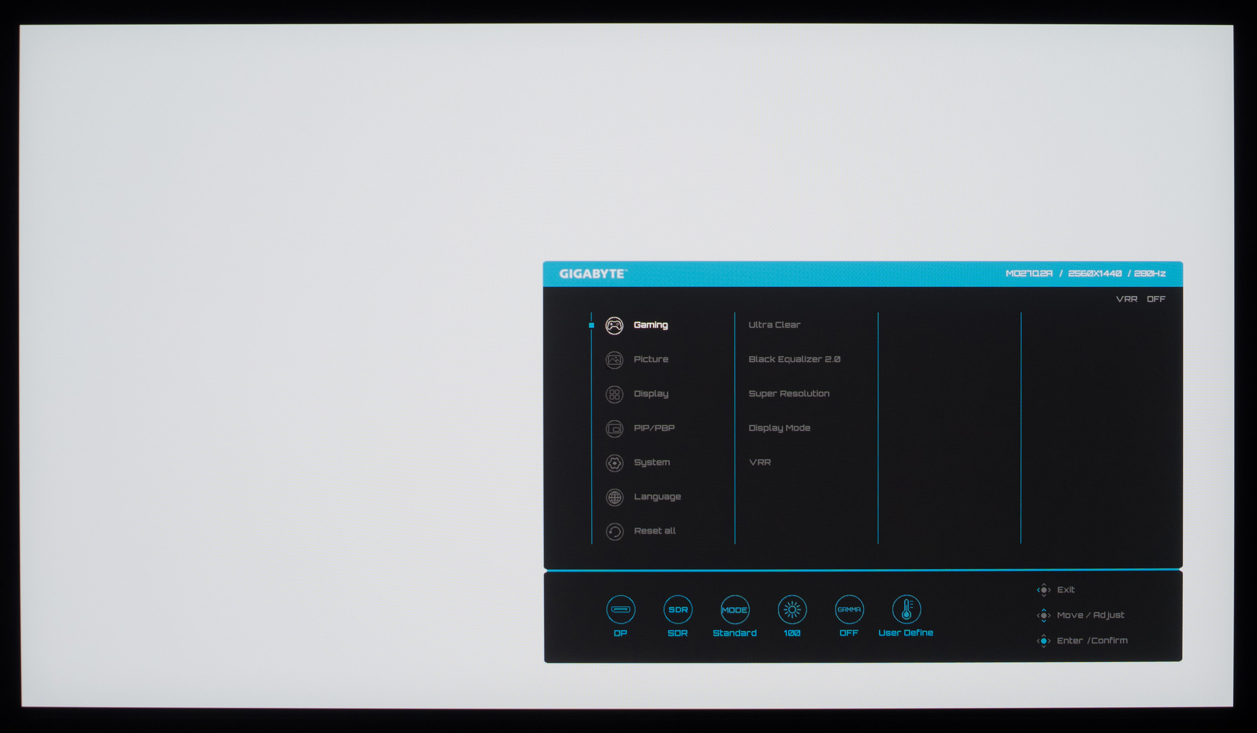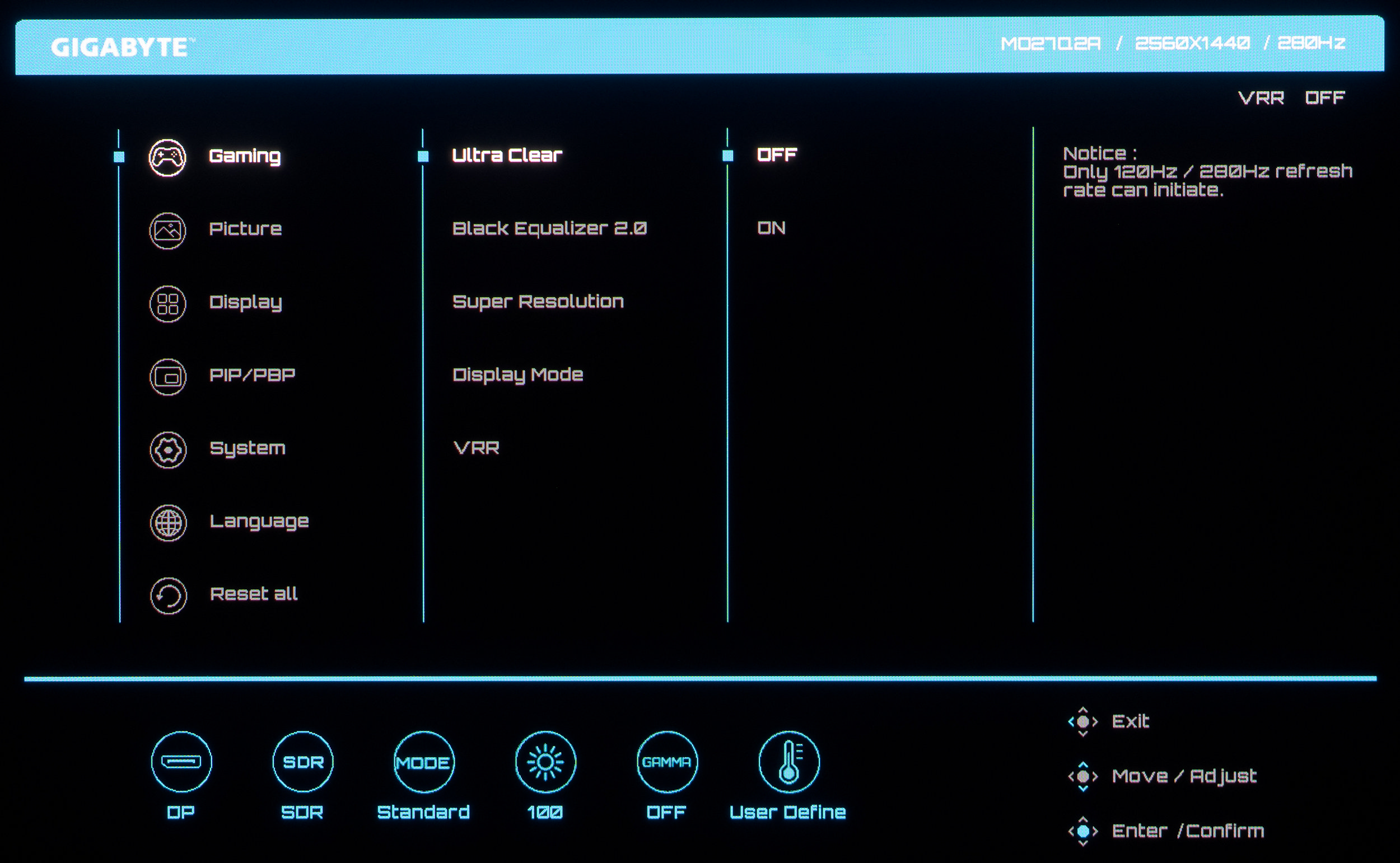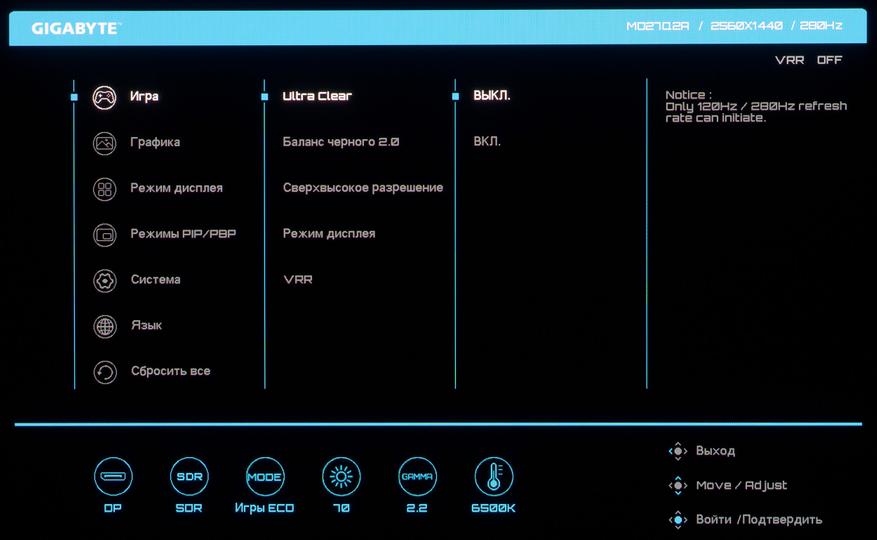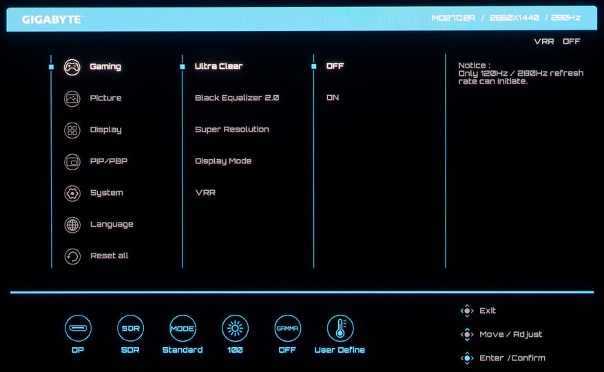 Для MO27Q2A заявлена полноценная совместимость с основными VRR-технологиями — официальная сертификации в наличии. Снижение заметности шлейфов возложено на функцию вставки «чёрного кадра». В случае с новинкой производитель переименовал её в Ultra Clear, хотя по своей сути это всё тот же хорошо знакомый механизм, который в предыдущих решениях Gigabyte фигурировал под названием AIM Stabilizer.