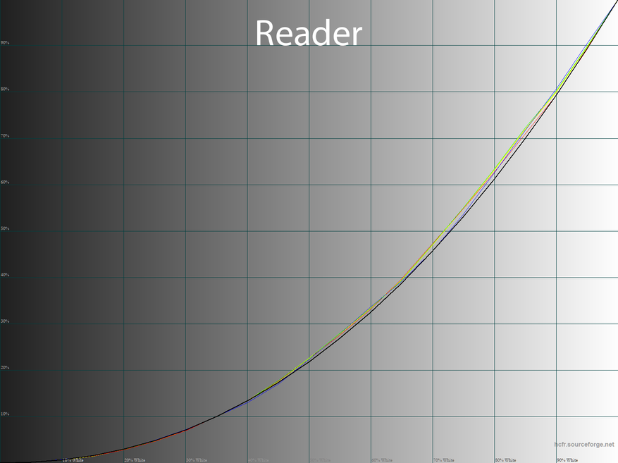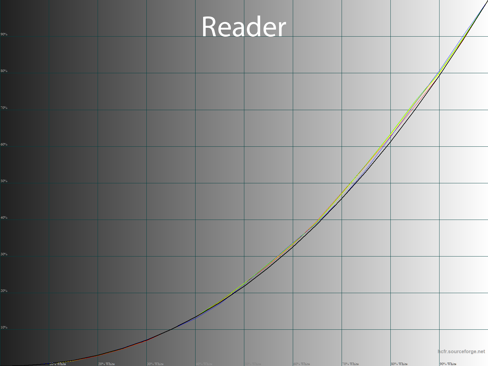 По гамме большинство режимов ведут себя похоже. Исключением снова становится Reader, где контрастность слегка снижена. Для длительного чтения или офисной нагрузки это даже можно считать плюсом, потому что изображение воспринимается мягче и менее агрессивно для глаз.
