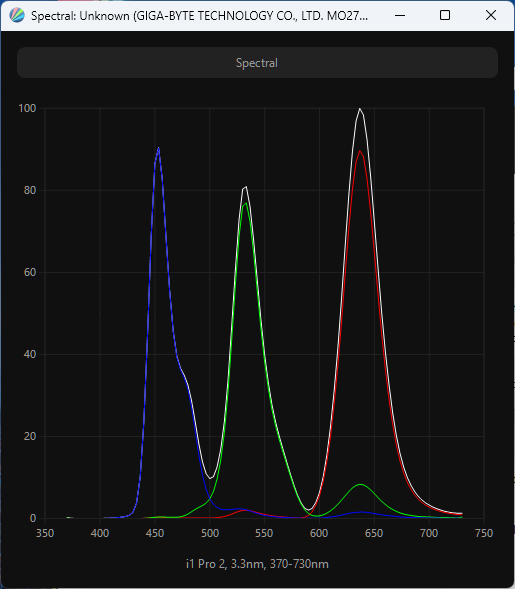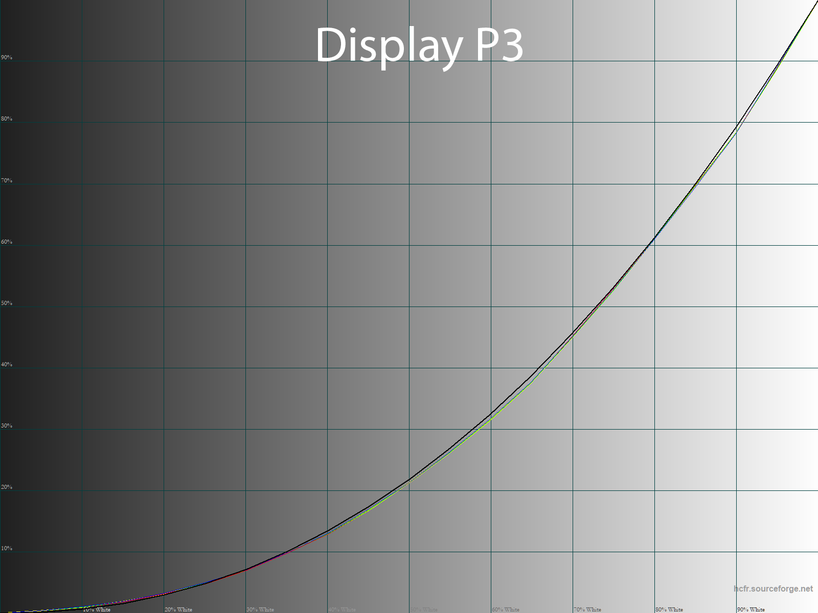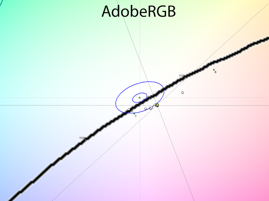 В стандартном режиме, а также при эмуляции sRGB и Display P3, цветовая температура держится примерно возле 6400 K. Это довольно близко к привычному ориентиру, хотя небольшой дисбаланс по RGB всё же присутствует. В AdobeRGB температура опускается примерно до 6070 K, и отклонение точки белого становится заметнее. В Reader картинка уходит ещё дальше в тёплую область, примерно к 4800 K, но для такого режима это уже ожидаемое поведение, а не недостаток как таковой.