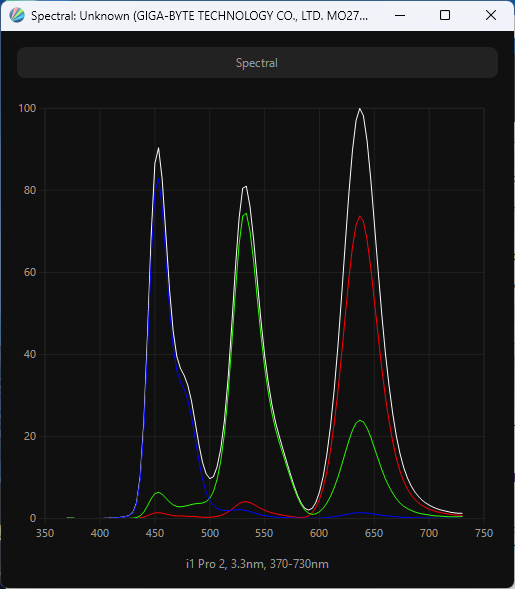 Взгялнем на полученные данные в ходе инструментальных замеров основных режимов монитора Gigabyte: