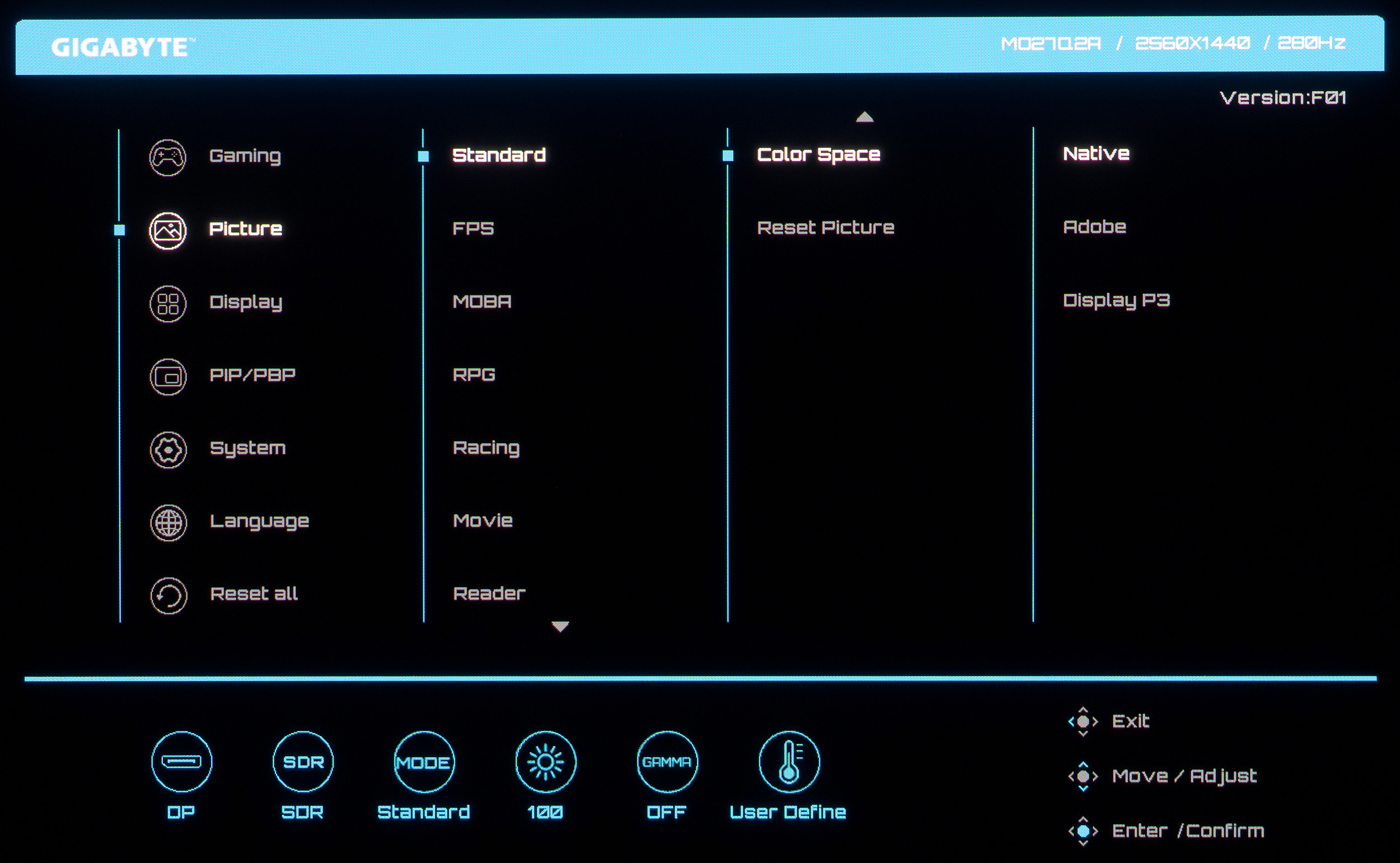 Что касается непосредственно M027Q2A, то это более продуманное в сравнении с предшественником MO27Q2 решение, где производитель не только беспроблемно увеличил частоту развёртки, но и добавил пару полезных функций. Так компания делает свою линейку MO всё ближе к топовой AORUS и преследует цель снизить количество нареканий при работе за OLED.