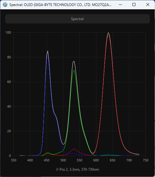 В MO27Q2A используется уже давно знакомая по другим моделям панель QD-OLED производства Samsung Display. По характеру цветопередачи она не преподносит сюрпризов: перед нами развитие уже хорошо изученной технологии, чьи сильные стороны были понятны ещё по предыдущим поколениям. Монитор предлагает крайне широкий охват, без явных проблем перекрывает сразу три востребованных цветовых стандартов и в этом отношении демонстрирует тот уровень, которого от современных QD-OLED-решений и ждёшь.