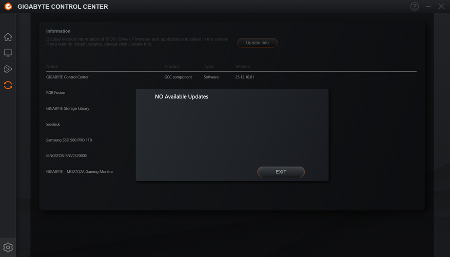 Впрочем, к работе приложения есть вопросы: скорость работы ПО местами разочаровывает, да и назвать её интерфейс по-настоящему интуитивным сложно. К тому же часть него задействована в управлении всей системой (и неважно какая у вас материнская плата), её диагностике, настройке и диагностике подключённых накопителей и многом другом, чего не ожидаешь увидеть от комплексной утилиты для управления новым монитором — ожидаешь изначально совсем другое, а получаешь излишне навороченный и вместе с тем запутанный инструмент. Более того, данное ПО не нашло новую прошивку (заявленную на сайте — с дополненной функцией VRR Anti-Flicker) и проинформировало, что проводить обновление нет никакой необходимости. Это, откровенно, странно…