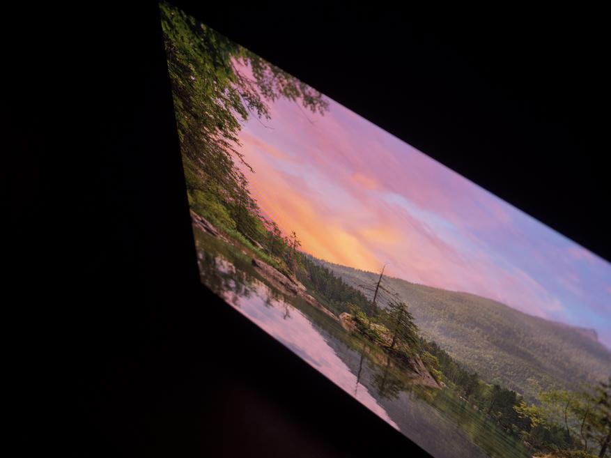 Но у такой схемы есть и обратная сторона. QD-OLED чувствителен к внешнему освещению: чем его больше, тем заметнее на тёмных участках проявляется характерный фиолетово-розовый паразитный оттенок. Особенно хорошо это видно на чёрном фоне и близких к нему оттенках. Поэтому по-настоящему глубокий и безупречный чёрный цвет такие панели показывают только в затемнённом помещении. Впрочем, на практике этот нюанс редко превращается в серьёзную проблему, потому что сильных сторон у QD-OLED всё равно заметно больше.