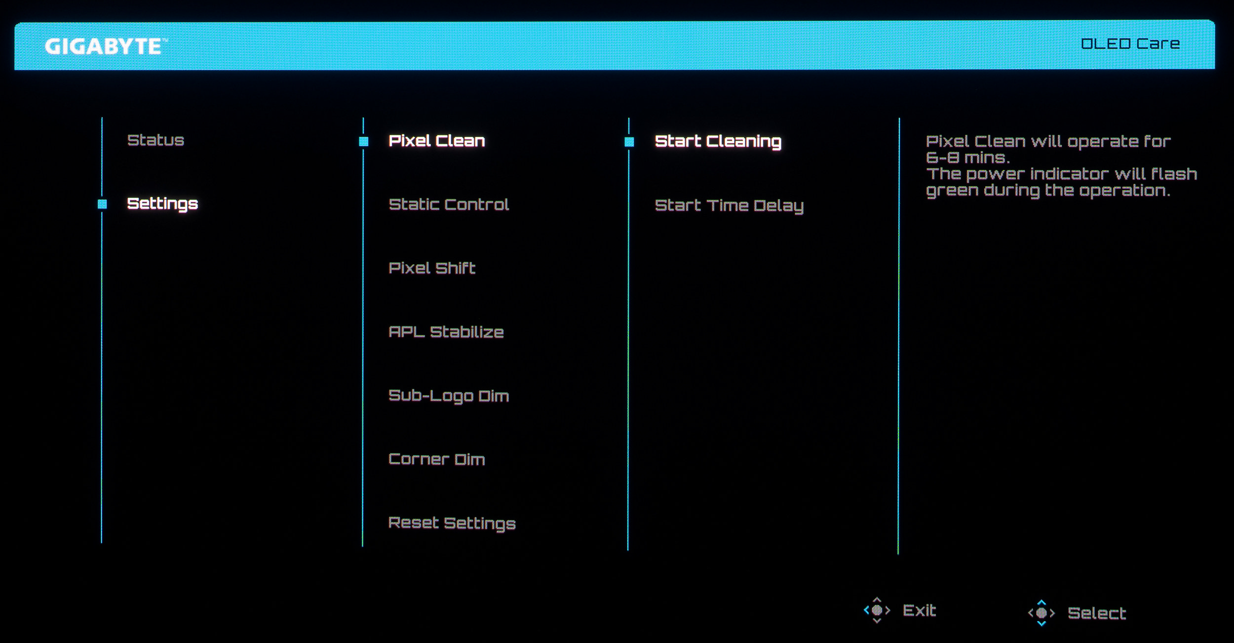 Отдельного внимания заслуживает блок OLED Care. В нём собраны механизмы, которые помогают снизить риск выгорания панели. Монитор умеет смещать пиксели, отслеживать статичные логотипы в системе и корректировать их яркость. Кроме того, предусмотрена функция APL Stabilize с тремя вариантами стабилизации яркости, затемнение углов Corner Dim и AI-обработка неподвижных элементов изображения.