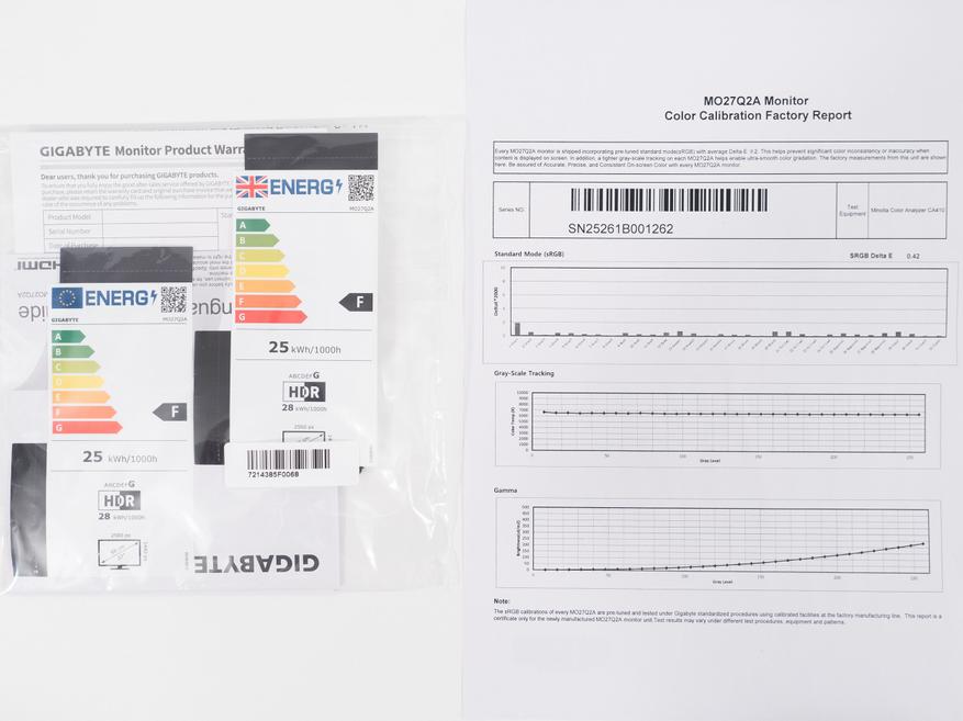 Бумажных материалов в коробке достаточно много, и на первых порах они действительно могут пригодиться. Отчёт о заводской калибровке режима sRGB намекает на то, что работать в нём можно без дополнительных вмешательств в рабочие параметры со стороны пользователя — высокая точность будет обеспечена.