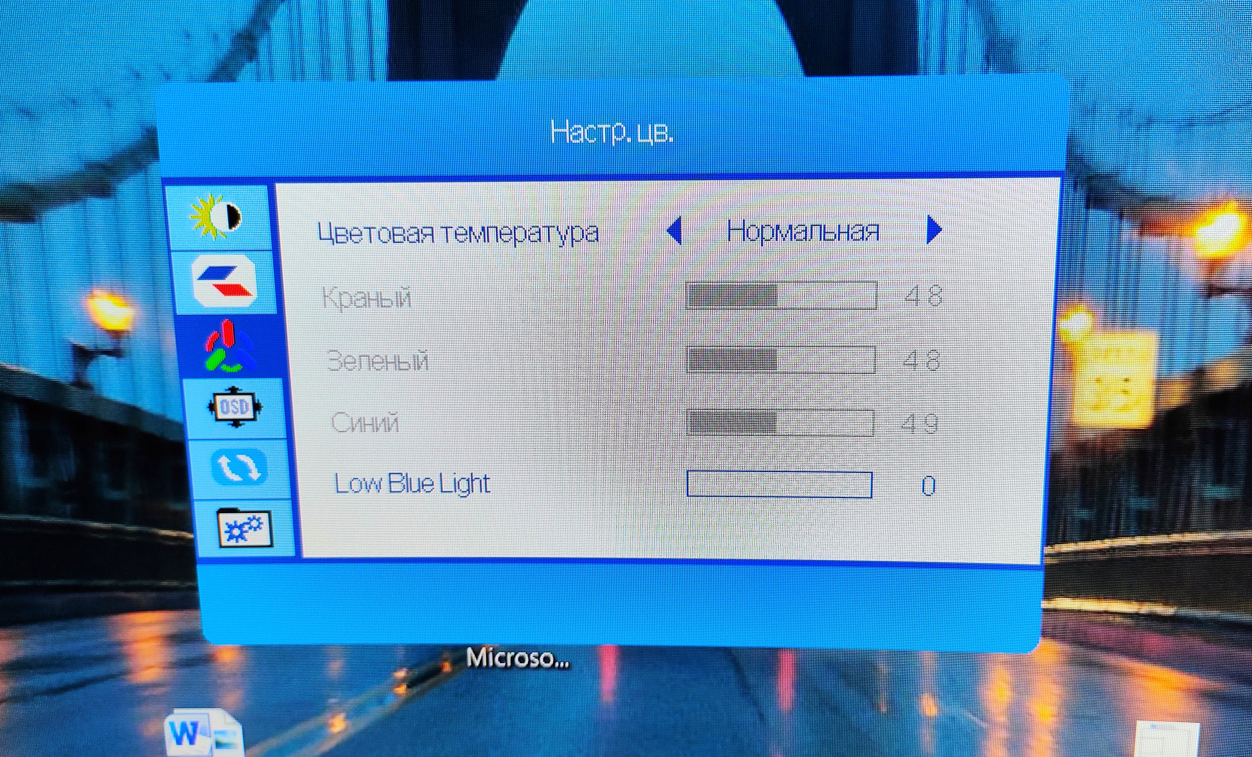 - Цветовая температура и настраиваем синеву изображения;