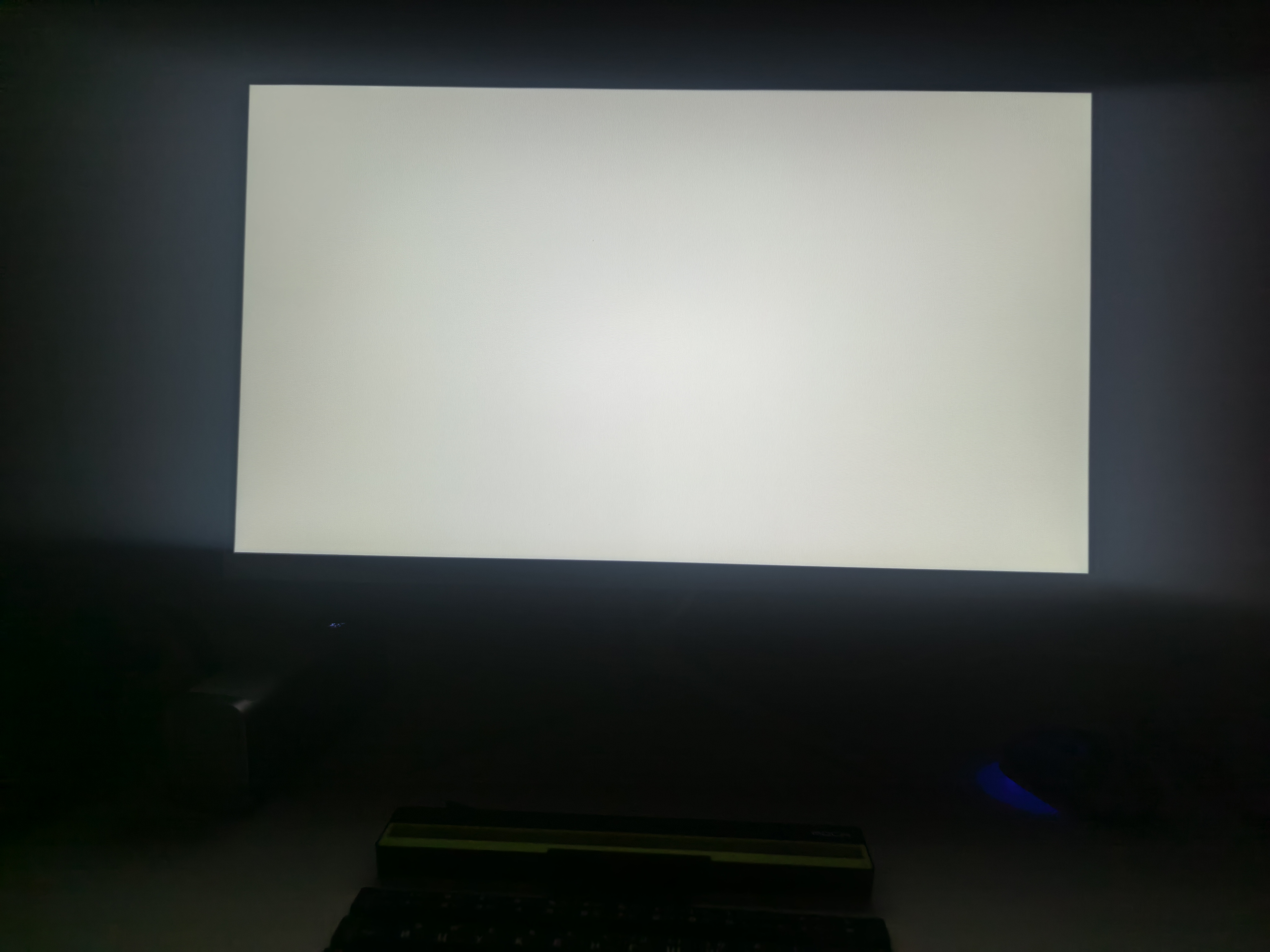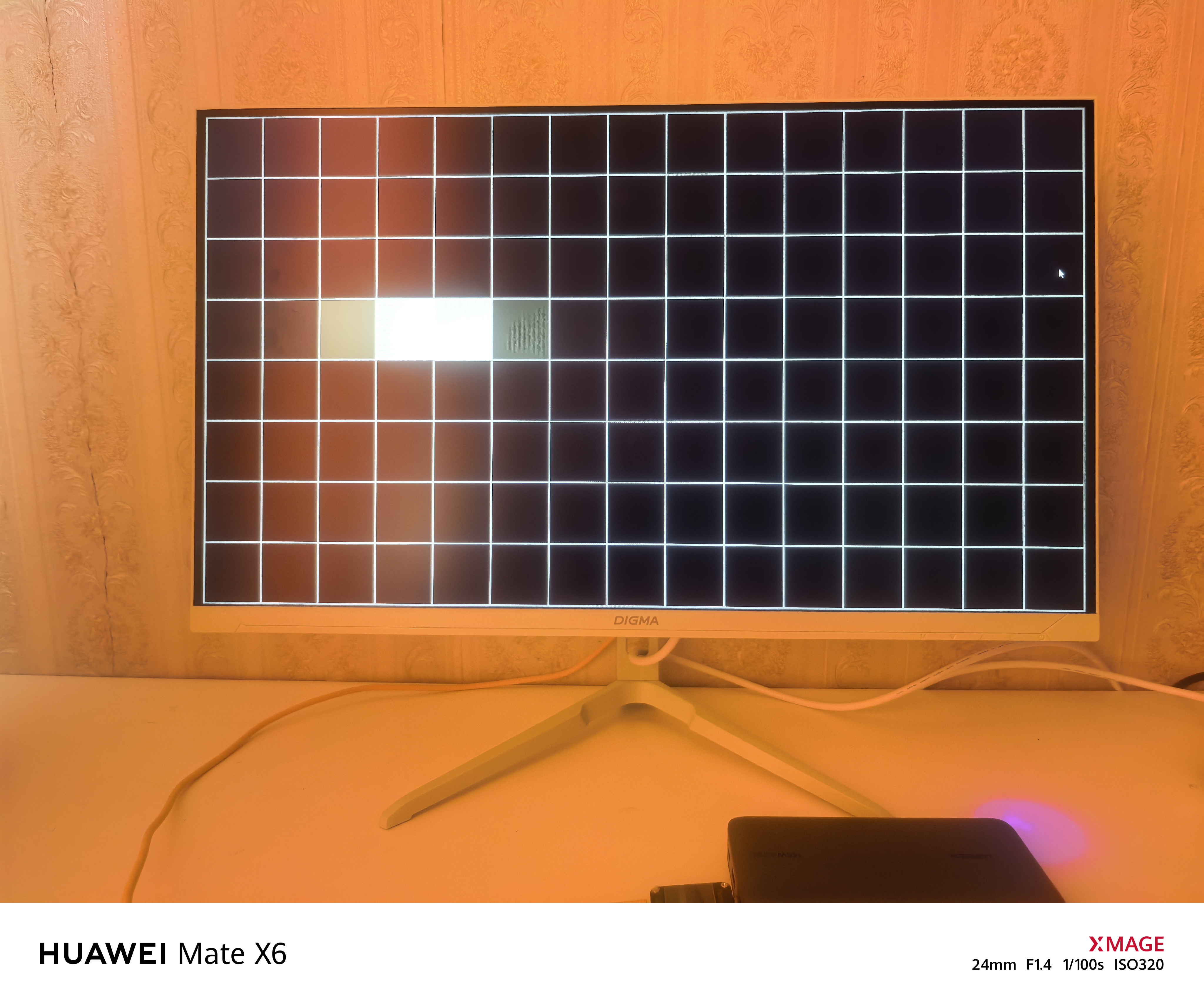 Для подтверждения, или проверки, распределения подсветки, сделал фотографии с небольшой выдержкой черного и белого цветов. На первой видно, что засветов много в верхних углах. По тесту Datacolor, результаты похожи.