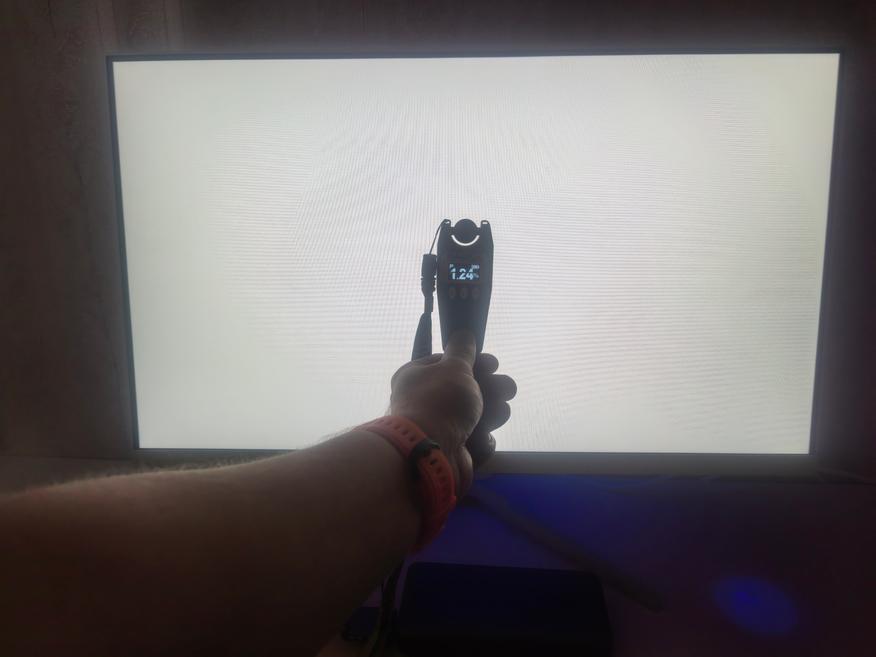 Я хотел себе монитор большим экраном. К моменту у меня уже был колориметр datacolor, как и Radex Lupin с Opple Light Meter 4. Давно хотел свести их в одном тесте и посмотреть на разницу в показателях. Касательно монитора я не гнался за большим разрешением. В игры тоже не играю, но сейчас много моделей на рынке в недорогом сегменте имеют название «игровые». В некоторых есть закругленный экран, в других RGB-подсветка, а в третьих все вместе. Мне для интернета, офиса и игры в GTA V с головой хватит монитора с хорошей цветопередачей. Дополнительно есть возможность изменять наклон для удобного использования. Сначала думал, его нельзя изменить. Надо просто приложить больше усилий к шарниру, чтобы сдвинуть его.