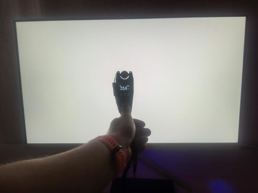 Еще один тест освещенности и ШИМа провел с помощью Radex Lupin. Прибор показал максимальную освещенность в центре в 354 Лк, что на 50 Лк больше, чем цифра, полученная от «паука». Уровень ШИМ для монитора низкий, но у IPS-матриц это в порядке вещей.