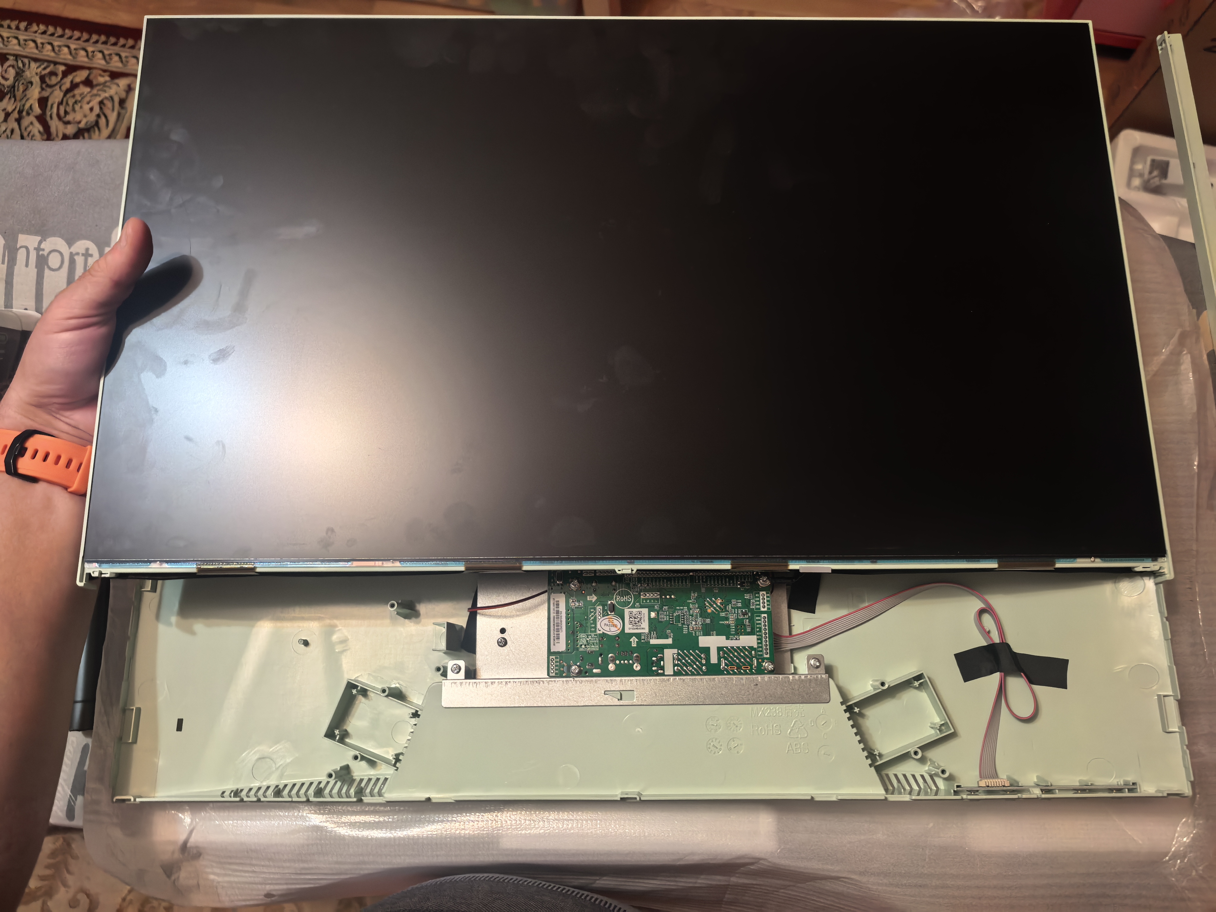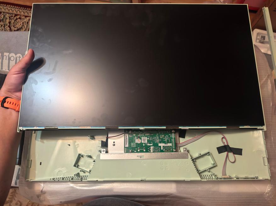 Довольствоваться таким гаданием на матрице не хотелось. В интернете ничего не находил, кроме названия матрицы топовых мониторов бренда, включая 4К серии Digma Pro Art, в которых используются матрицы от AU Optronics Corp. В обозреваемом матрицы должны были быть проще. Были задатки успешного завершения поиска, но ни к чему не привели. В итоге разобрал монитор. Он держится на трех винтах и далее на защелках.