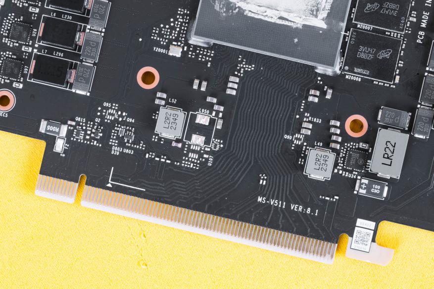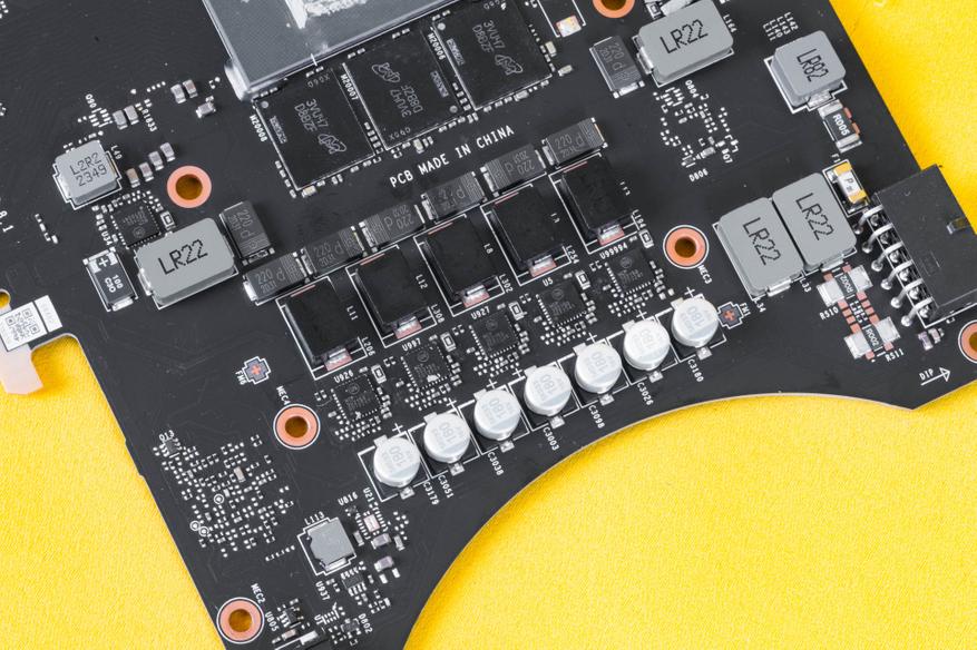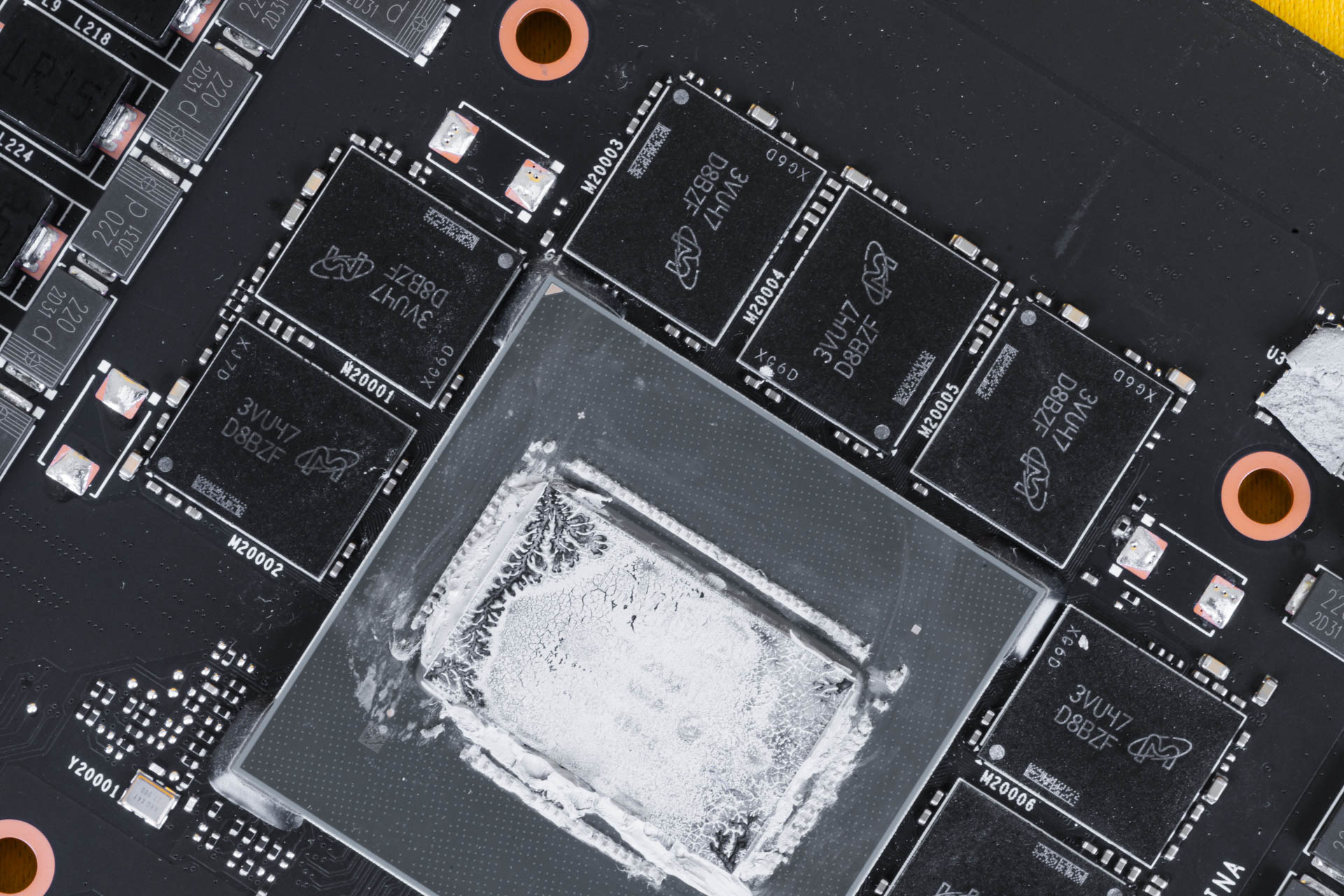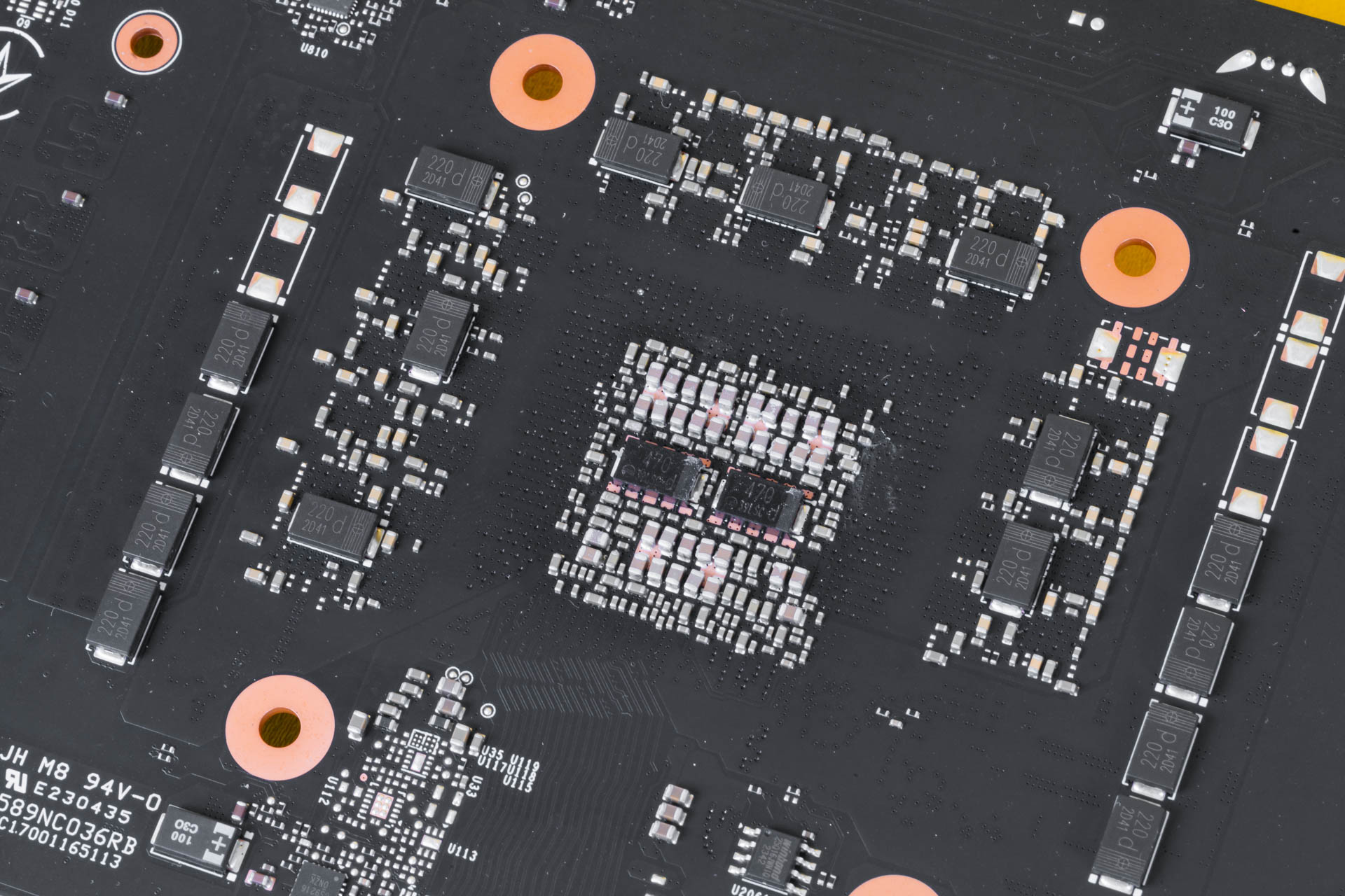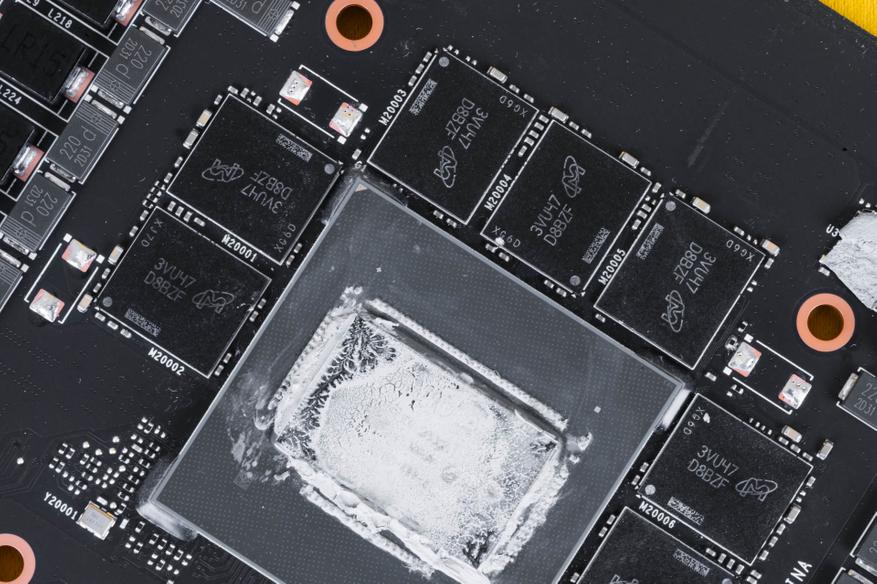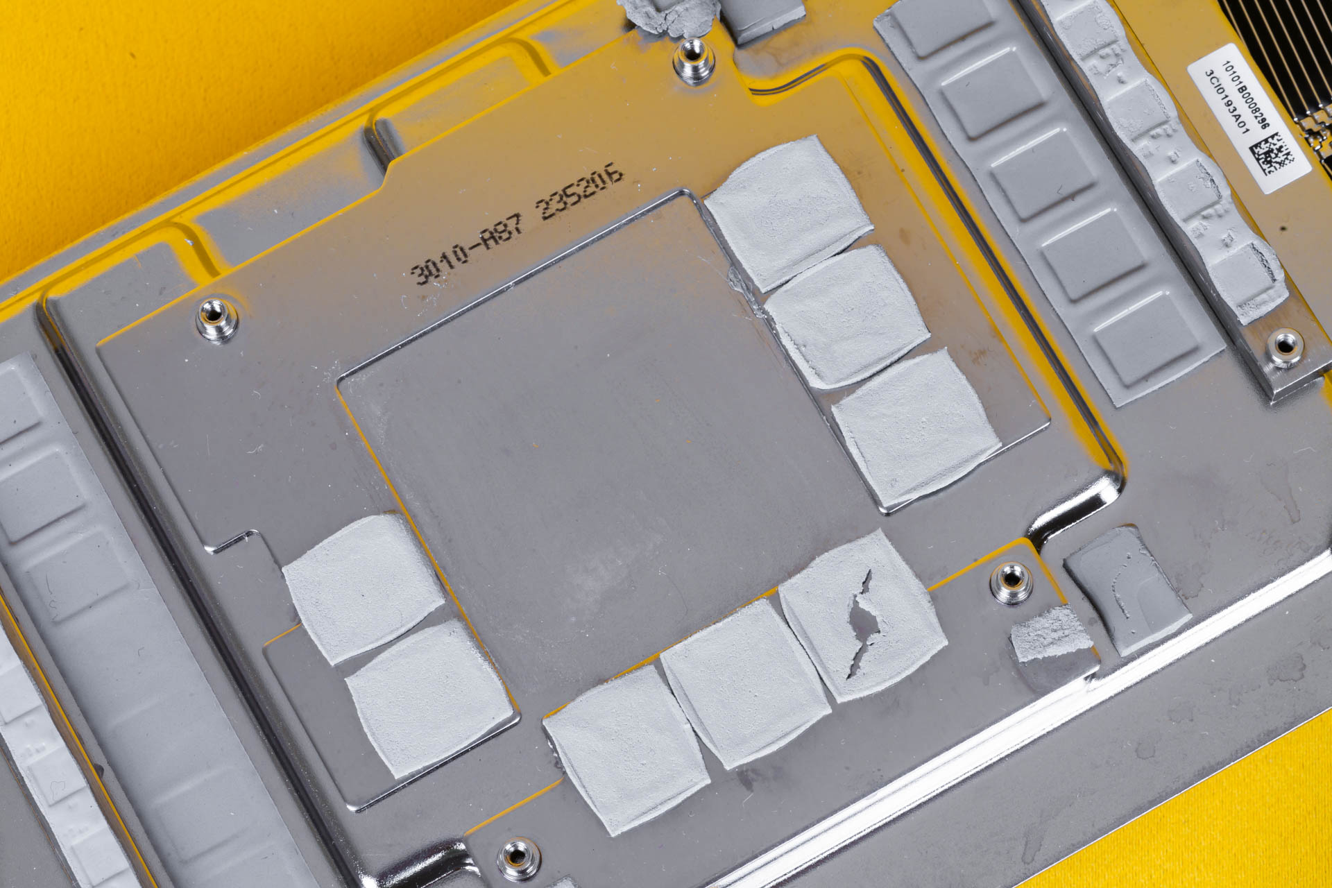 На бэкплейте, в области соприкосновения с графическим процессором, располагается термопрокладка, которая передаёт тепло на бэкплейт.