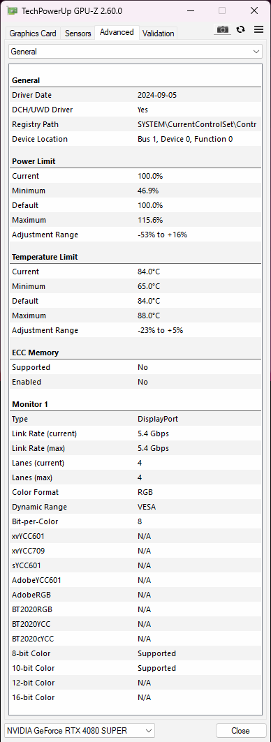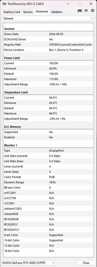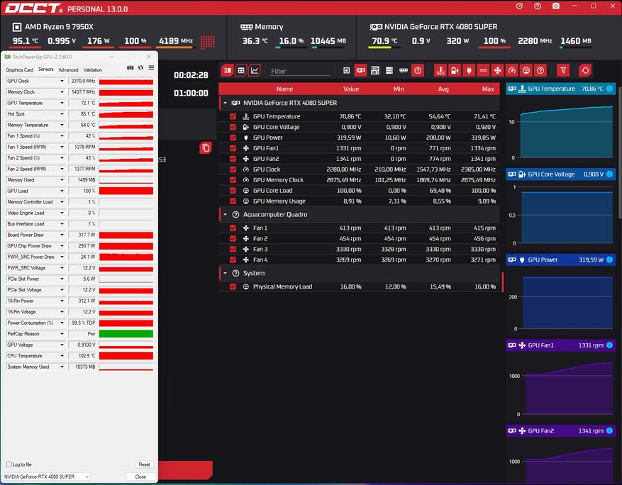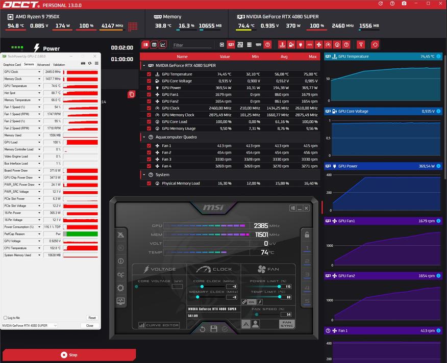 Система охлаждения данной модели работает довольно тихо, но температура иногда может быть выше, чем у других моделей 4080 Super с тремя вентиляторами, что не удивительно.