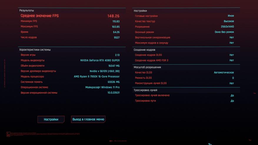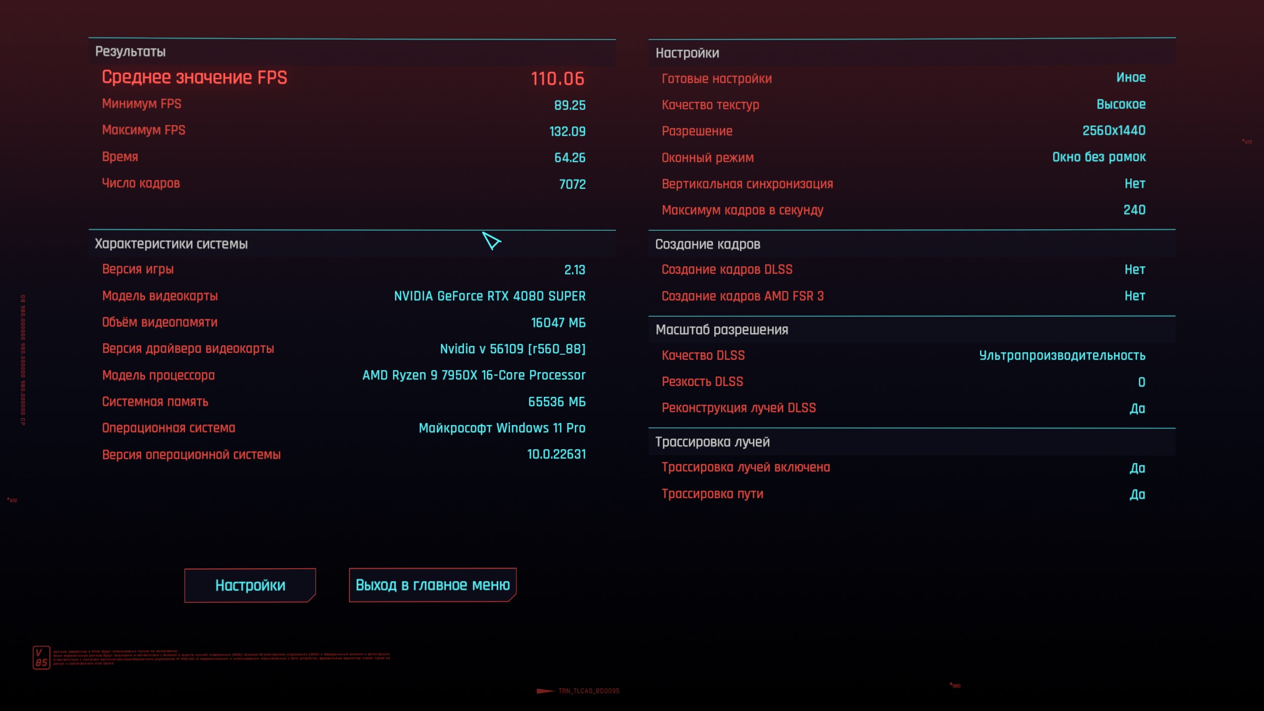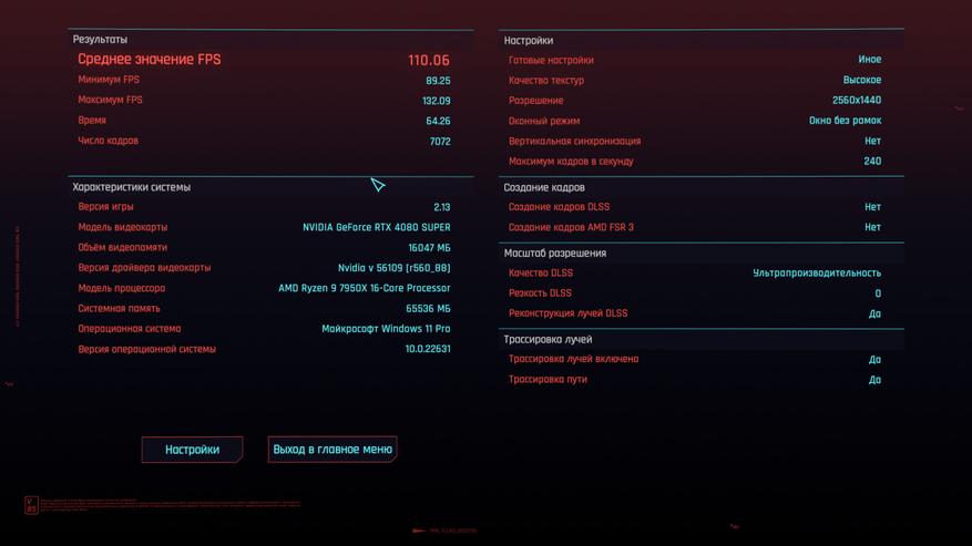 Далее протестируем данную видеокарту в играх, в которых предусмотрен бенчмарк, — Cyberpunk 2077 и Forza Horizon 5. Полученные результаты на скриншотах.