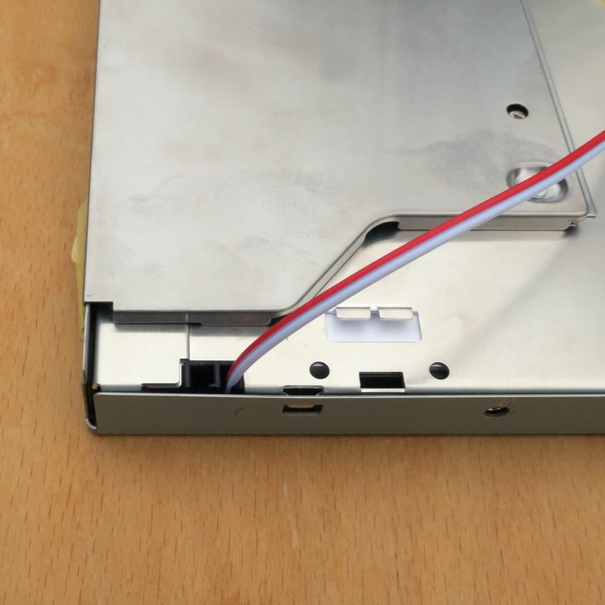 Я забыл, что кабель из лотка должен выходить не прямо, а загибаться под углом 90 градусов вверх. И при такой конфигурации место сгиба точно попадает на место, где кабель припаян к планке; а это создаёт опасность излома.