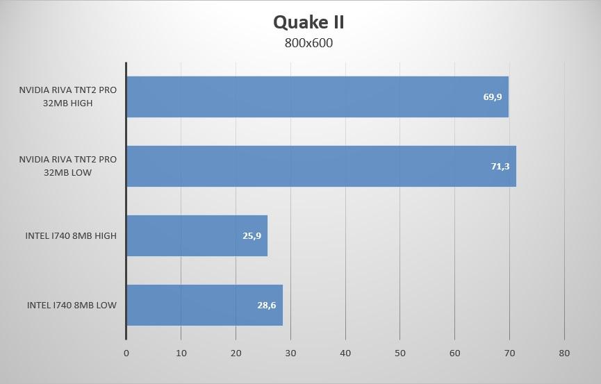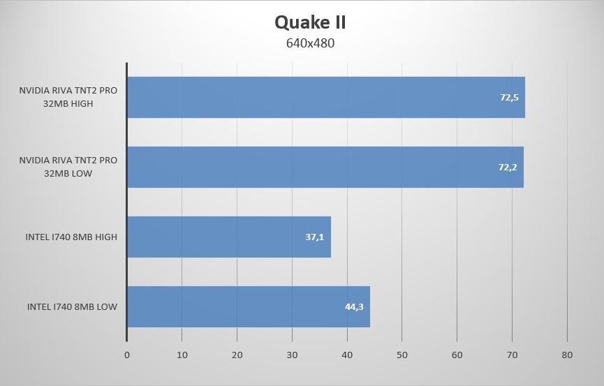 При этом видеокарте i740/i815 для 30fps в Quake II с использованием OpenGL было достаточно процессора Celeron 366, а может и меньше, у меня просто в хозяйстве это самый младший процессор тех лет.