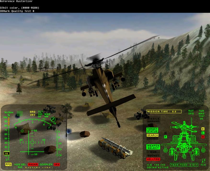 Тестировать будем по классике при 16bit цвете, хотя видеокарта вполне неплохо себя чувствует и при 32bit, имея при этом незначительное падение производительности в отличии от видеокарт 1997-1998 годов у которых в 32bit режиме падение производительности было двукратным. А вот разрешение 320x240 на этот раз из тестирования исключим, ибо его использование не имеет смысла на столь производительных 3D видеокартах.