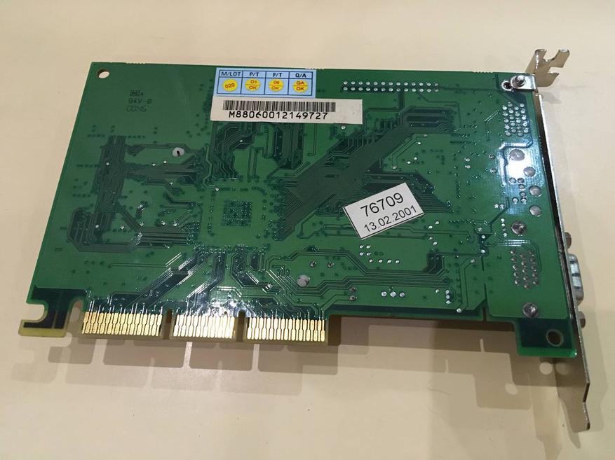 Достаточно качественно выполненная видеокарта с активным охлаждением. Радиатор съёмный и позволяет заменить термопасту, что в те годы было не всегда возможным, ибо зачастую радиаторы приклеивались намертво к чипу на термоскотч или того хуже — на термоклей. Собственно, это была одна из основных причин того что именно этот экземпляр остался у меня в коллекции — прочие были отвратного качества и были проданы от греха подальше, да и в принципе, чтобы место не занимали.
