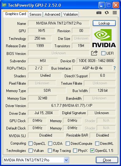 Ретро-обзор видеокарты nVidia Riva TNT2 Pro 32 МБ: память, кулер, драйвера…