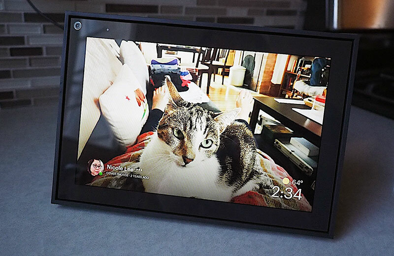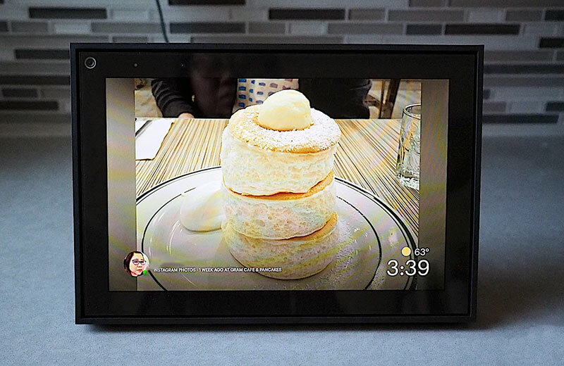 Новый дизайн явно лучше прежнего, и умный дисплей наконец-то выглядит как современное устройство. В режиме ожидания на экране будут отображаться стандартные картинки или фотографии из ваших аккаунтов в Facebook* и Instagram*, но только если вы предоставите к ним доступ. Технология адаптивной яркости экрана тут не так хороша, как в дисплеях Google Nest, но её достаточно для того, чтобы глазам было комфортно днём и ночью.
