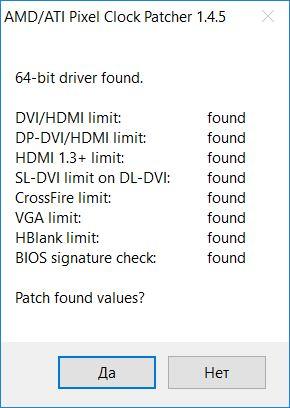 Здесь можно сразу согласиться, но лучше всего отказаться и перед перезагрузкой установить специальный патч AMD/ATI Pixel Clock Patcher, который должен обезопасить вас от неправильной работы драйвера после перепрошивки видеокарты.