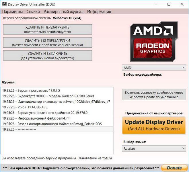 Утилита интересна тем, что позволяет автоматически, нажатием одной кнопки произвести полное удаление выбранного видеодрайвера (NVIDIA или AMD). В результате после перезагрузки система полностью готова к установке новой версии.