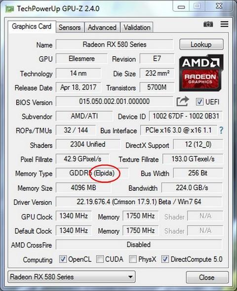 Первое, что необходимо сделать, это узнать производителя чипов памяти, установленных в видеокарте. Сделать это можно при помощи утилиты GPU-Z. В данном случае мы имеем дело с памятью производства Elpida.