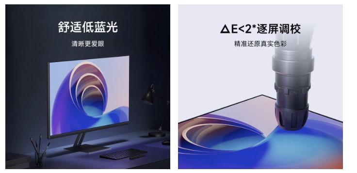 Монитор Redmi обладает стильным трёхсторонним дизайном с микрогранями. Соотношение экрана к корпусу составляет 90%, что позволяет минимизировать видимые рамки и увеличить площадь экрана для более комфортного просмотра.