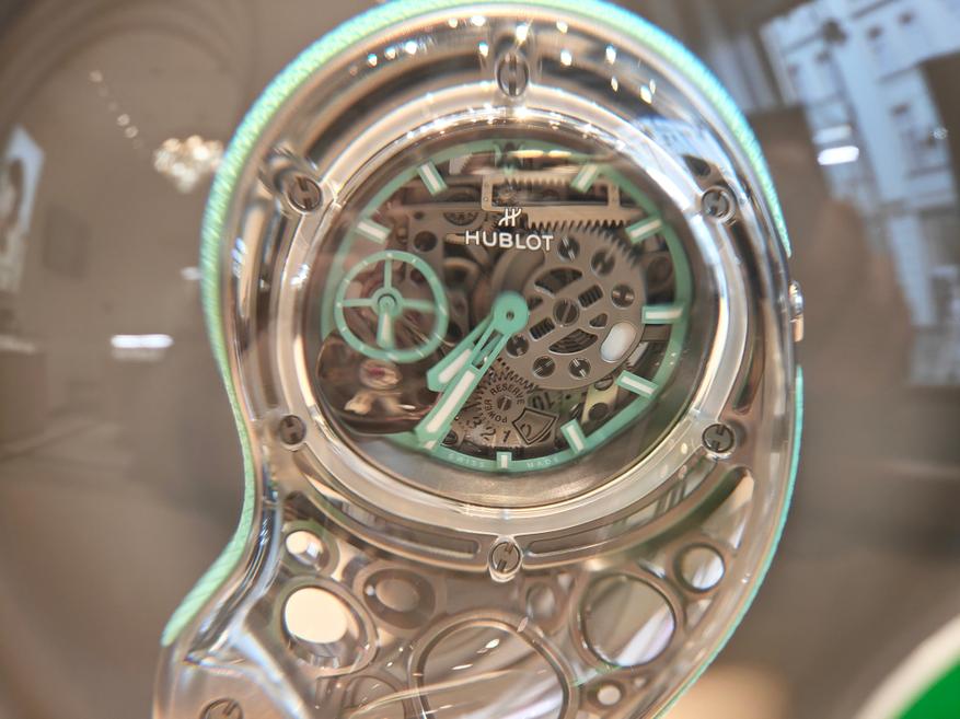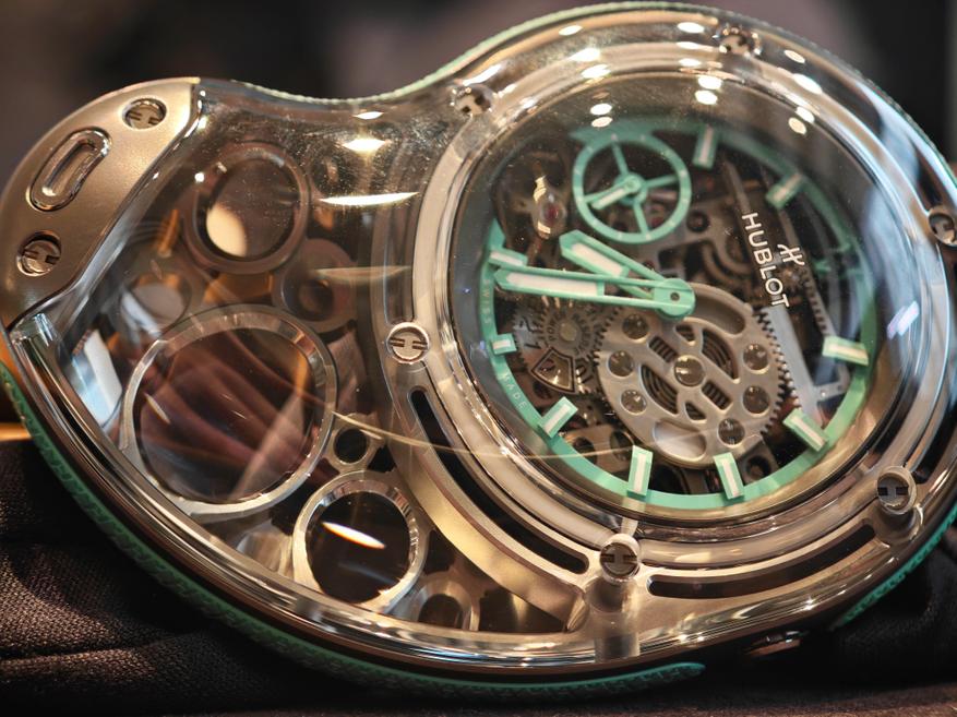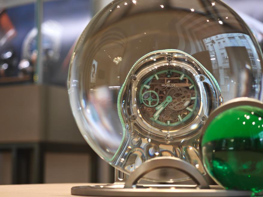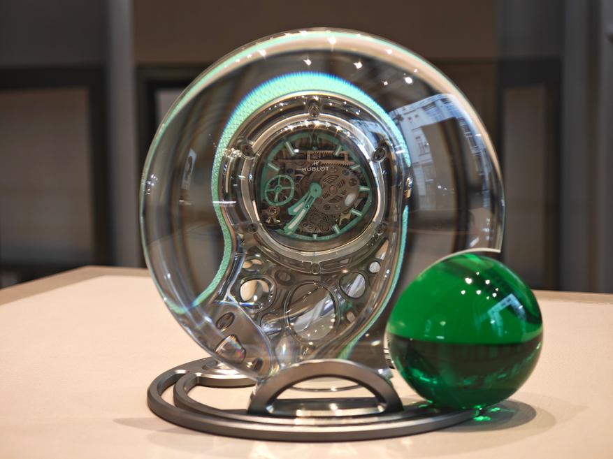 Надо сказать, что модель не самая дешевая: стоимость часов Hublot Droplet — ок. 10 млн рублей, поэтому логичнее было бы сохранить как интерьерные, на подставке: