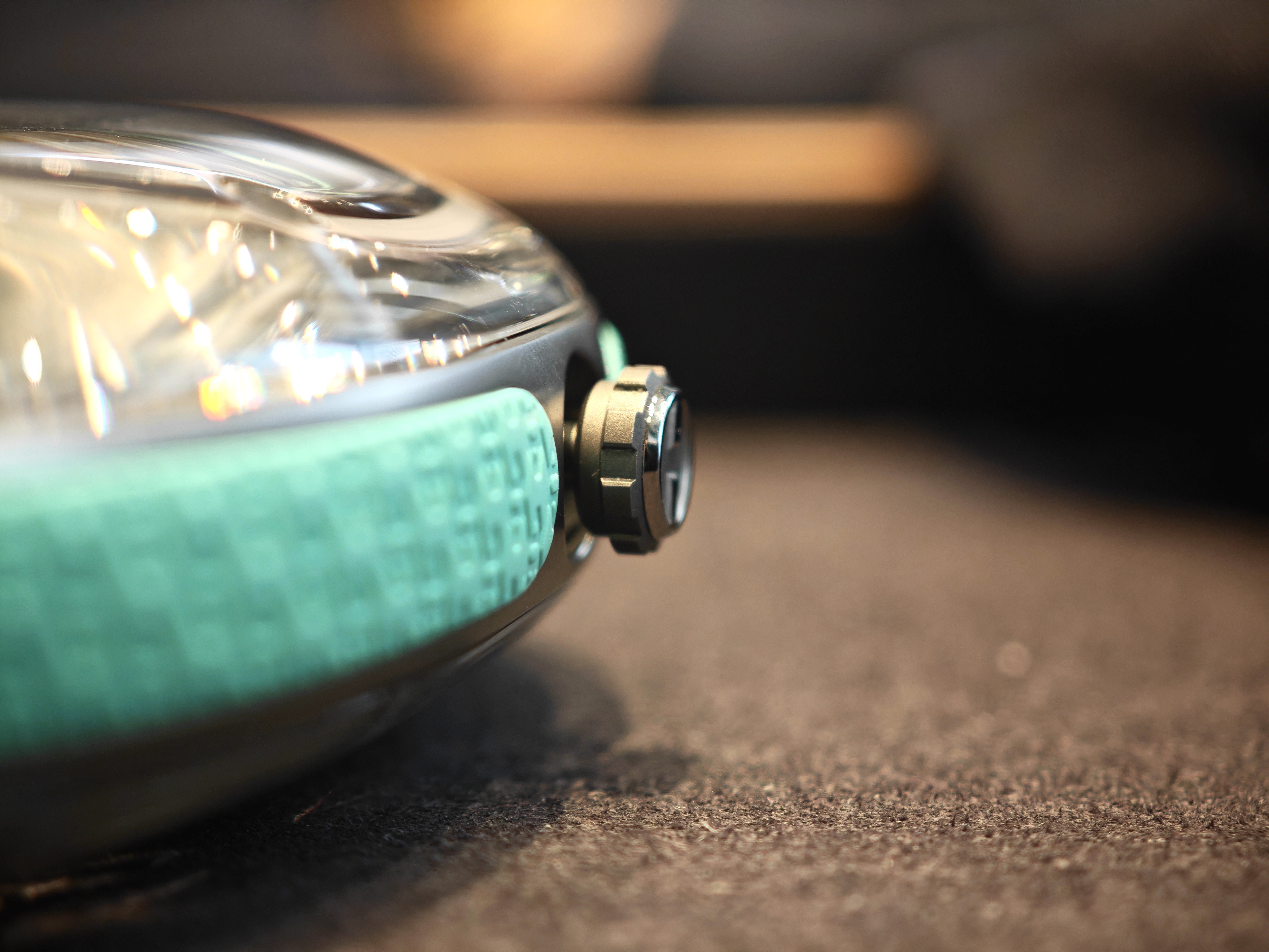 Усиливает этот образ комплект поставки: часы выставлены на небольшом пьедестале, который фокусирует на них внимание с помощью специального выпуклого стекла, тоже, само собой, символизирующего каплю: