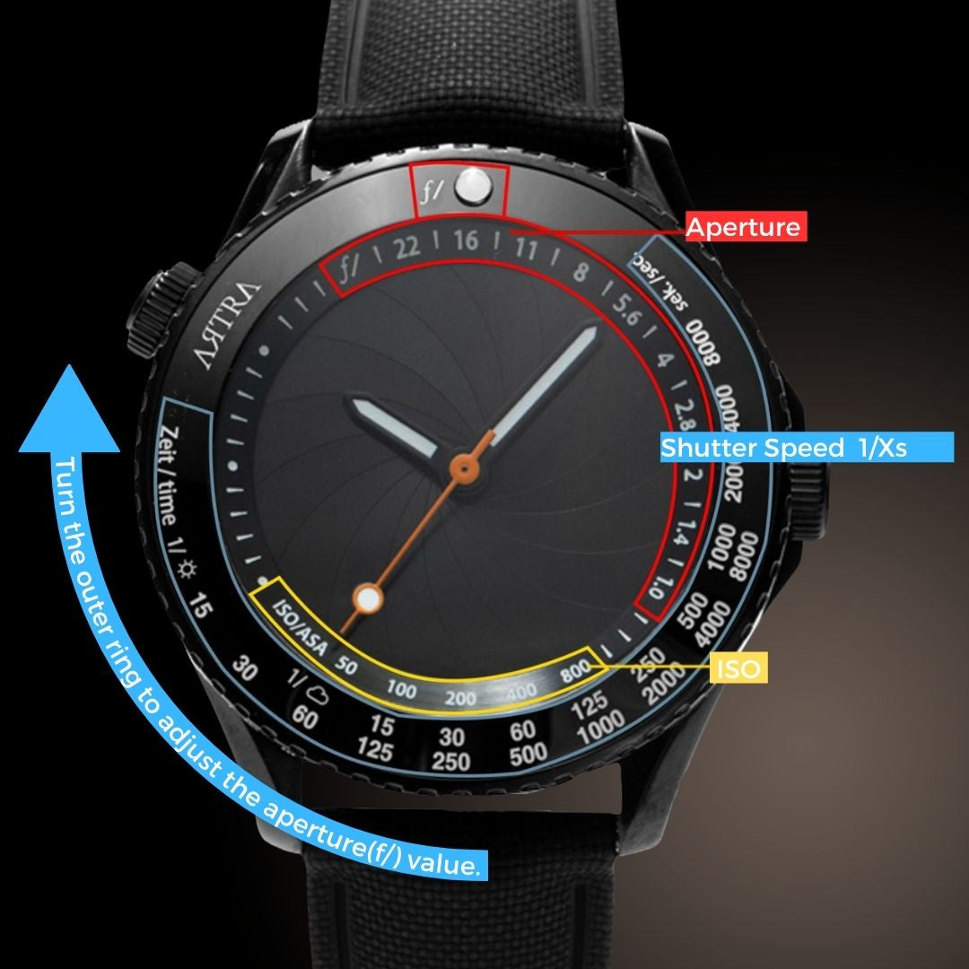 Компания Artra Designs анонсировала аналоговые наручные часы Camera One, разработанные специально для фотографов. Модель оснащена функциональной механической диафрагмой и инструментами для расчёта параметров съёмки.