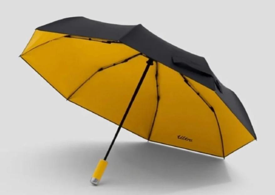 Бренд Xiaomi Life анонсировал новый продукт, указанный как «Зонт от дождя и солнца, ярко-жёлтый», который поступит в продажу 4 августа 2025 года через приложение Xiaomi Auto. Устройство выполнено в фирменном контрастном дизайне: черный внешний купол сочетается с желтой внутренней частью и ручкой, украшенной логотипом Ultra и глянцевым покрытием.