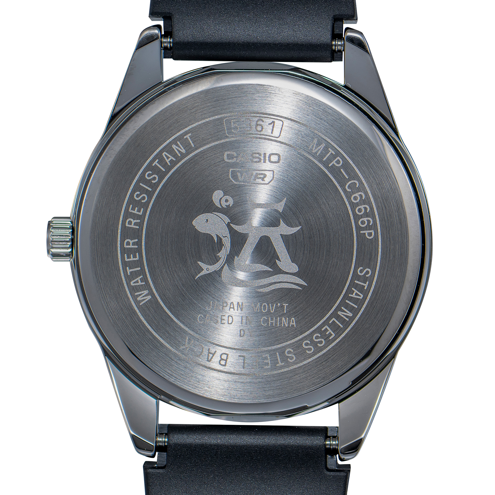 С технической стороны это классический трехстрелочник с кварцевым механизмом. Точность хода составляет +/- 20 секунд в месяц. За питание отвечает батарея SR626SW, ресурса которой, по словам производителя, достаточно для трех лет работы. Водозащита ограничена базовым уровнем для повседневного использования. Стоимость Casio MTP-C666 в Китае составляет 390 юаней(~$56). Учитывая специфическую тематику релиза, выход модели на глобальный рынок маловероятен.