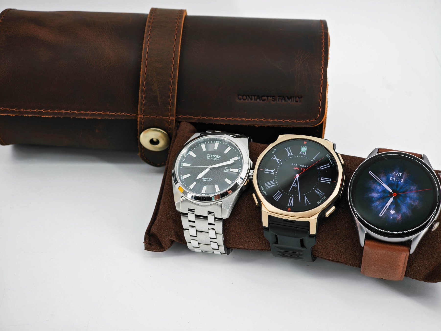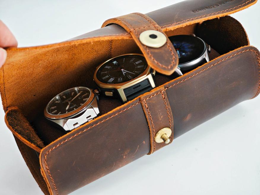 Чехол-органайзер для часов из натуральной кожи: обзор винтажного футляра на три слота для хранения и путешествий