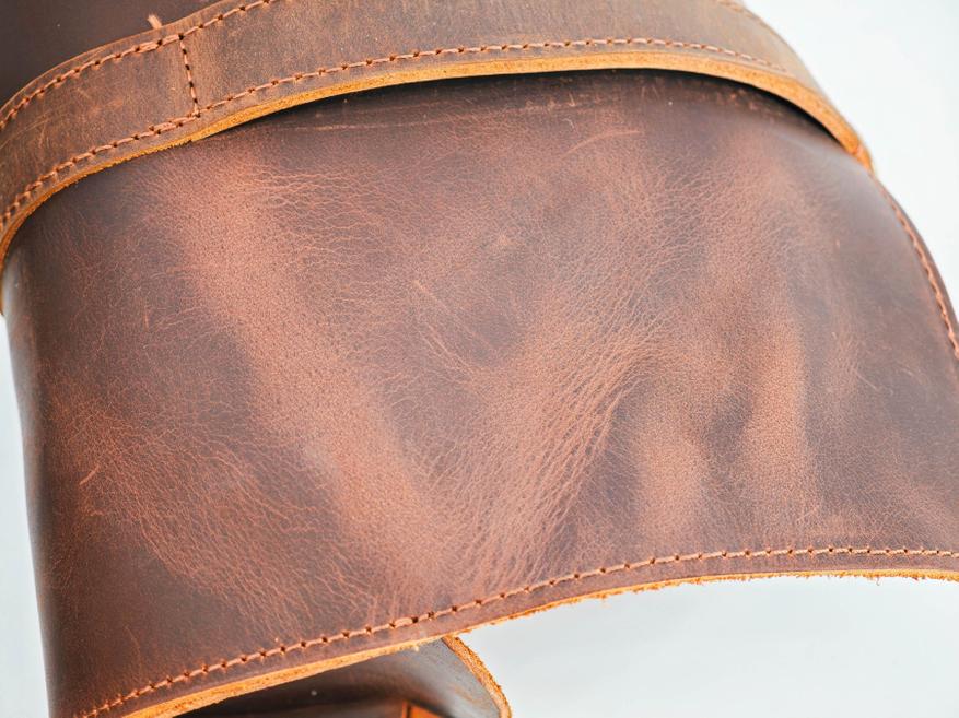 Особое очарование в этом футляре достигается за счет использования натуральной кожи типа Crazy Horse. Ее главная особенность — эффект pull-up: благодаря масляной пропитке, при каждом сгибе или прикосновении на поверхности проявляется более светлый тон, создавая мгновенный винтажный облик и особую, постоянно меняющуюся текстуру. Такая кожа, которая не боится времени и старения, а царапины на поверхности легко загладить и заполировать.
