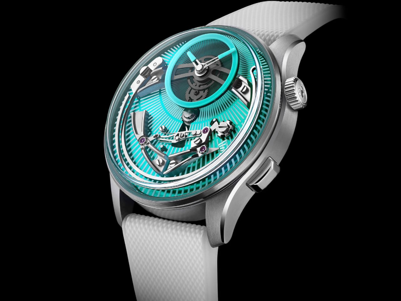 Корпус Light-catcher(tm) диаметром 41 мм изготовлен из титана Grade 5. Этот материал, обладающий высокой жесткостью, используется в качестве резонаторной камеры для усиления звука часового боя. Визуальная составляющая часов подчеркнута дымчатым сапфировым циферблатом и выпуклым сапфировым стеклом с антибликовым покрытием.