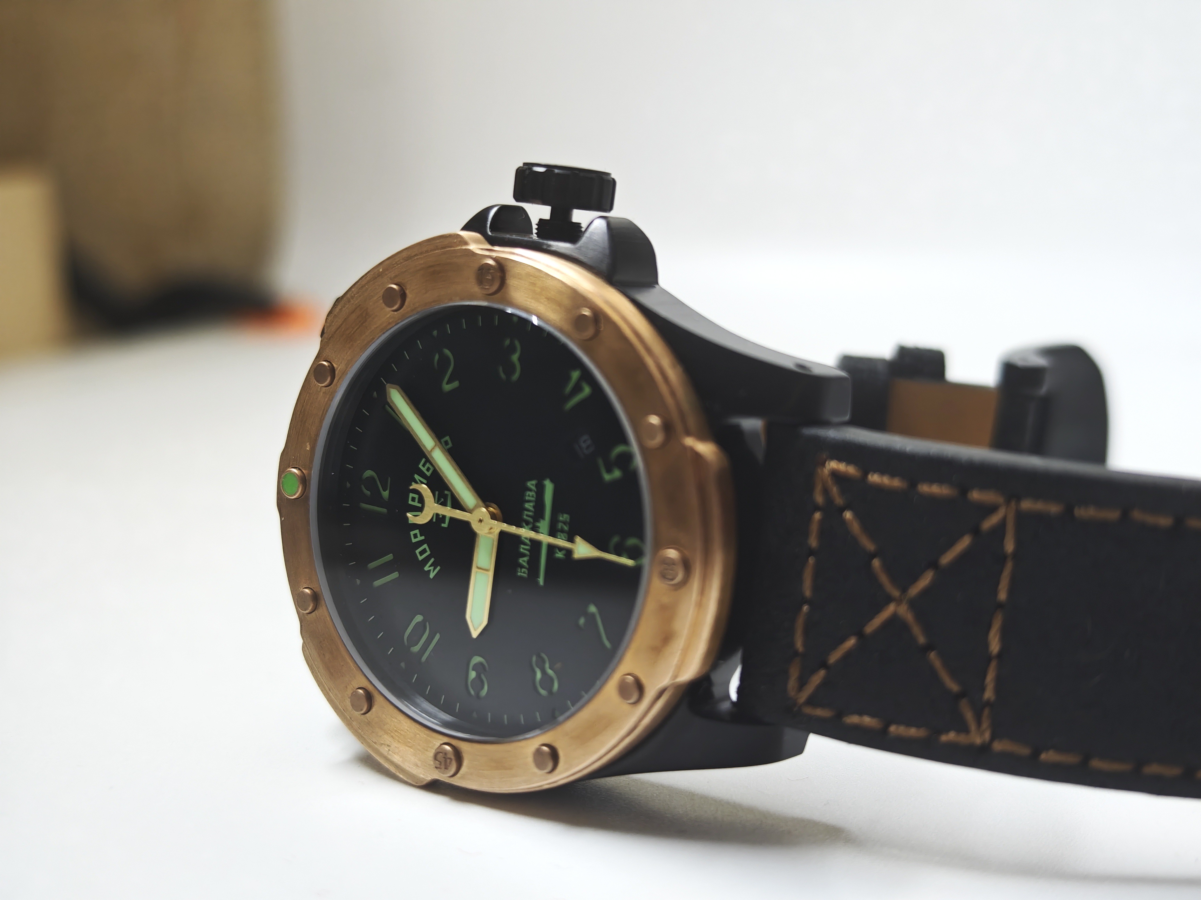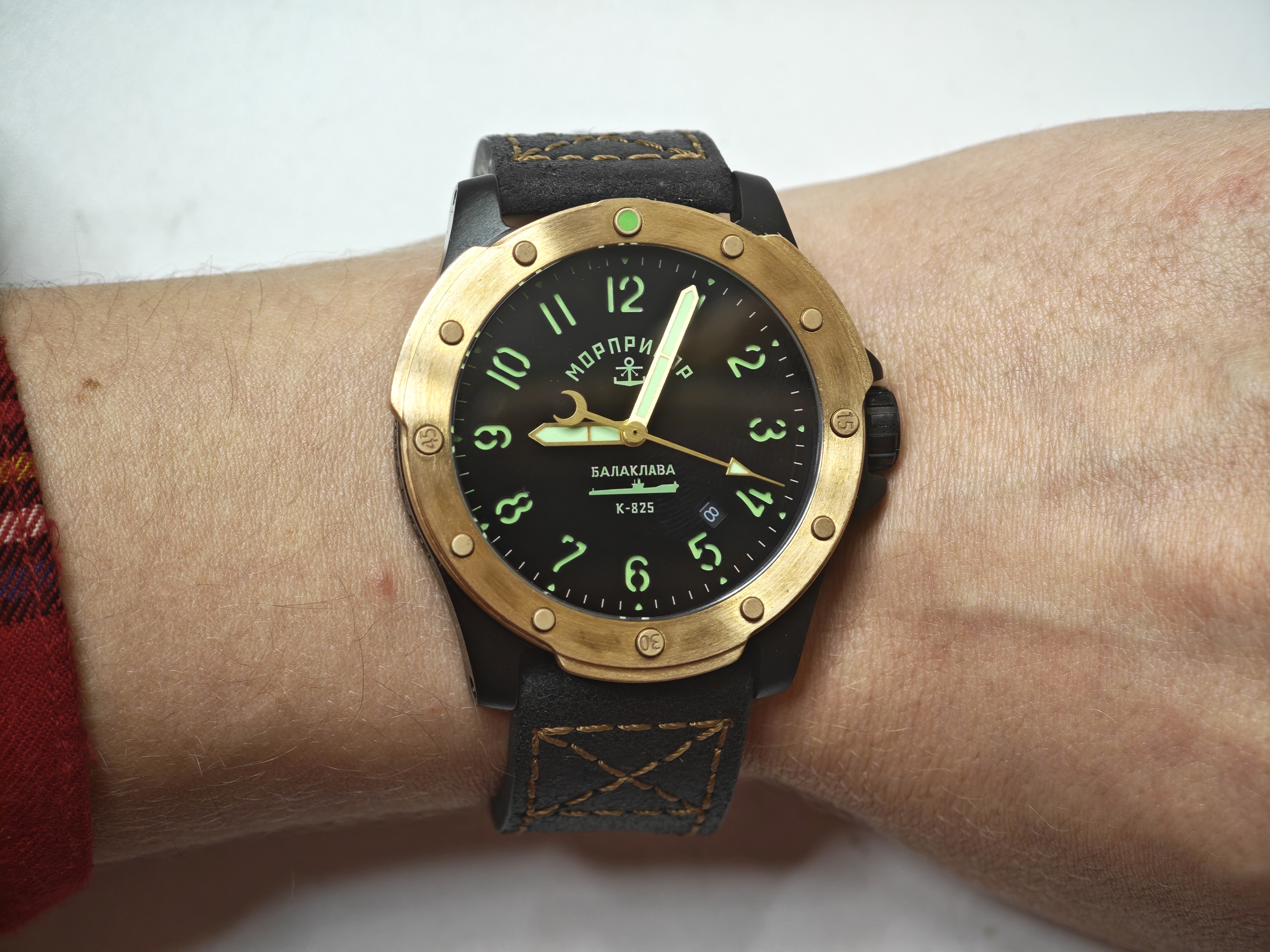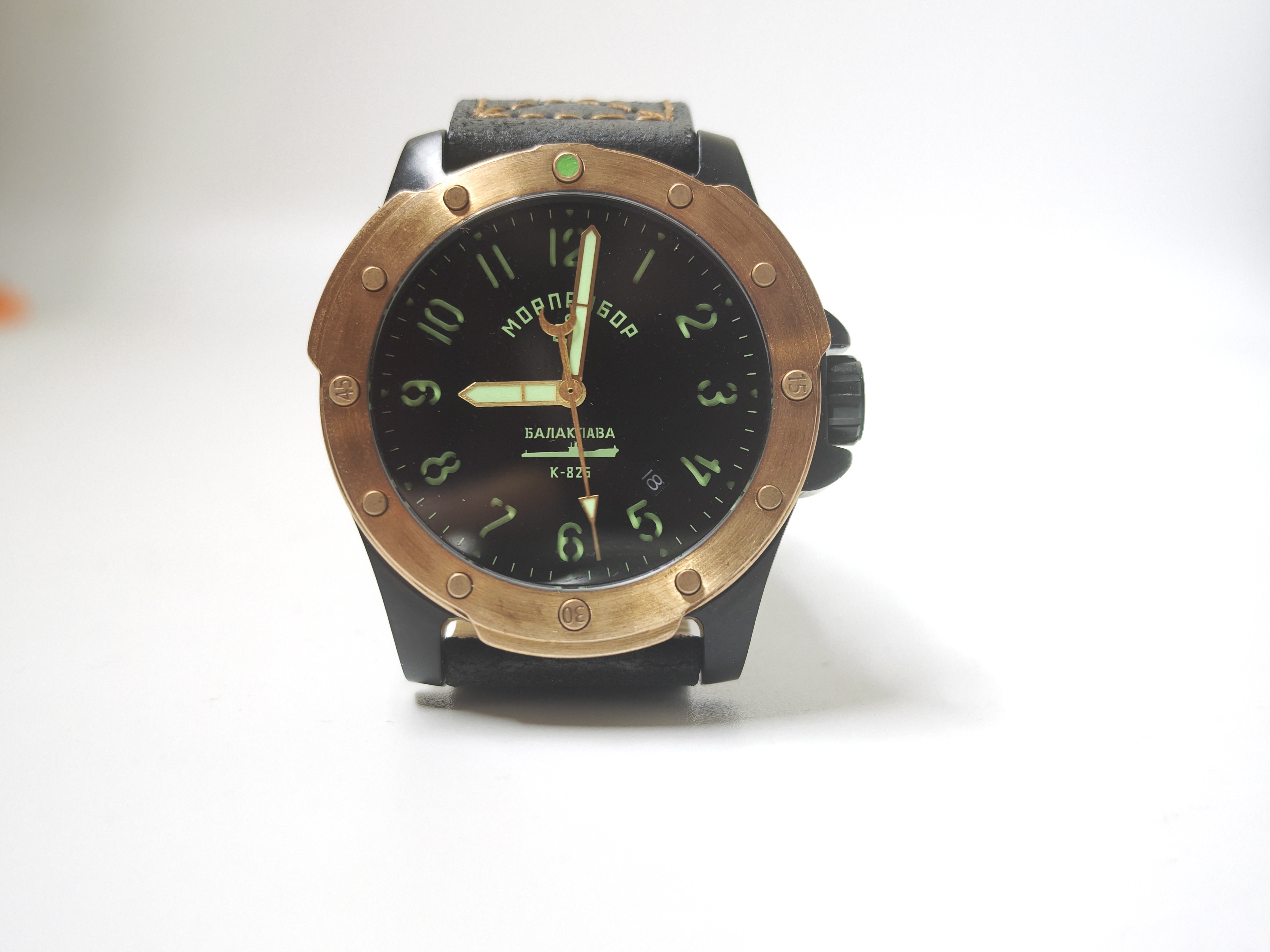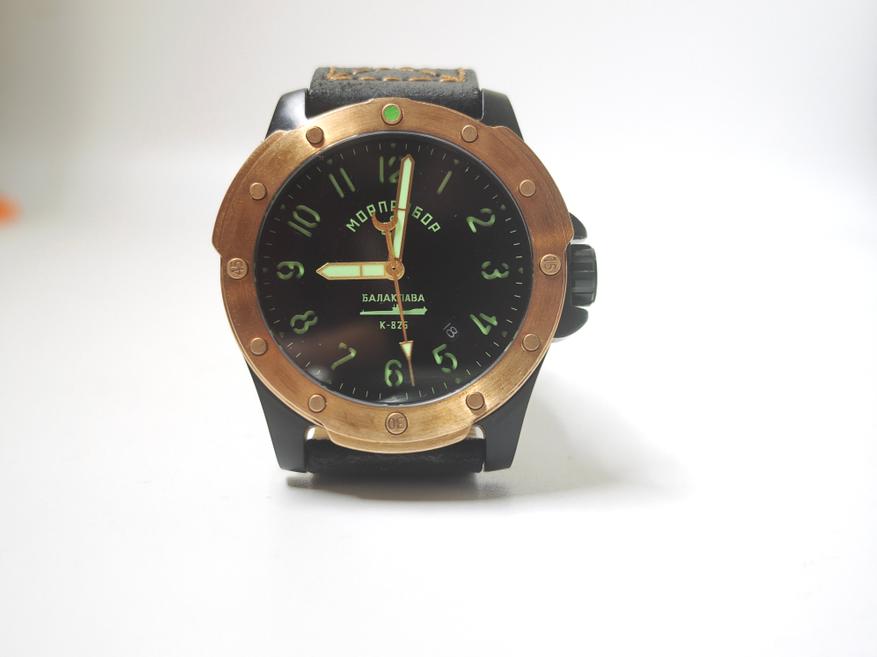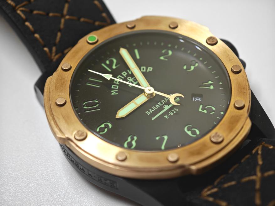 С моделью «Балаклава» Морприбор возвращается к Miyota 8215 в ее обновленной версии со стоп-секундой. Вместе с ней же в часы приходит и дата. Сам механизм скрыт под глухой завинчивающейся крышкой, что характерно и правильно для дайверов.