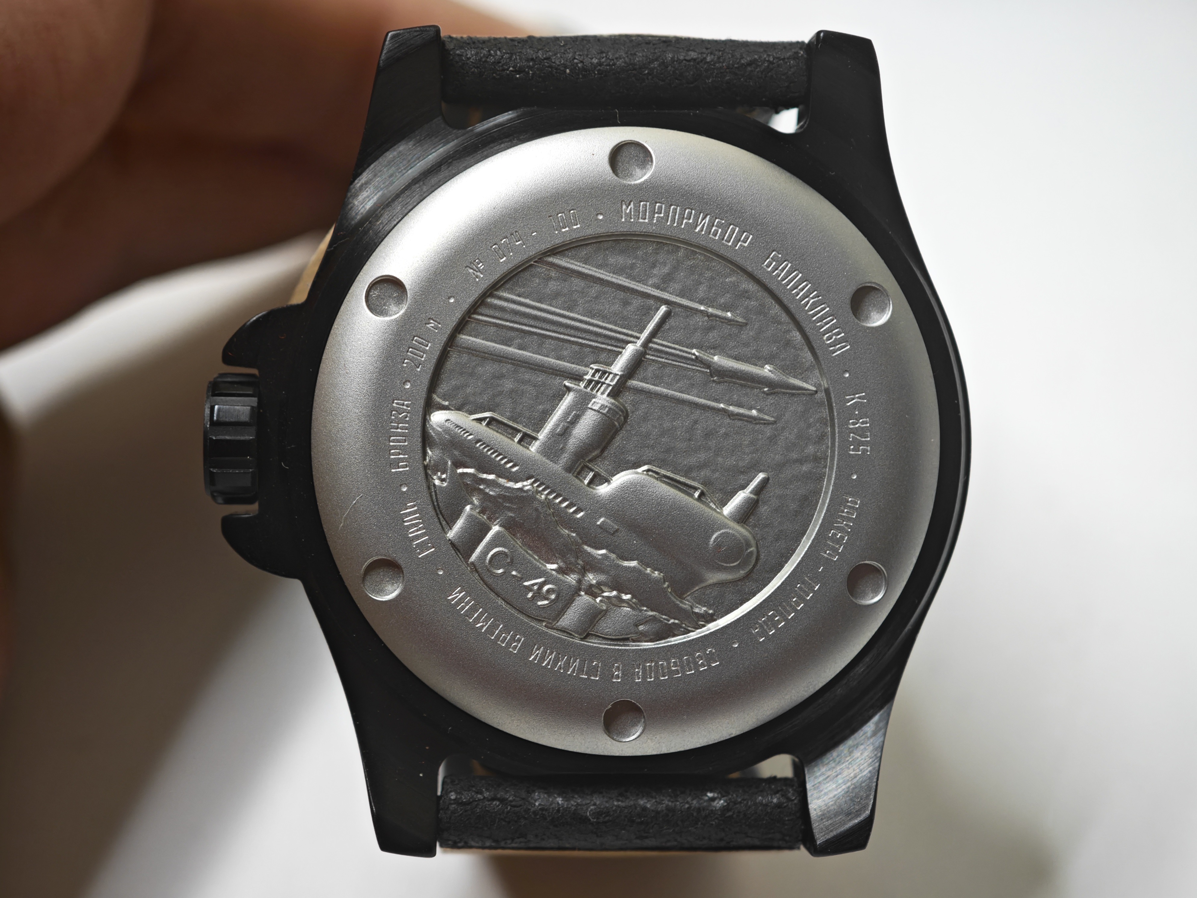 Основное «посвящение» в виде штампованного узора расположили на крышке часов: на «Ракете» это подводная лодка С-49.