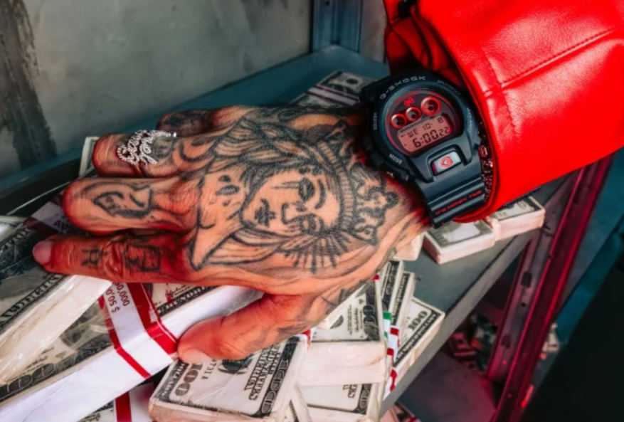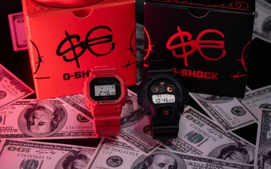 Две лимитированные модели Casio G-Shock в стиле рэпера Сферы Эббасты с надписью «It's Money Time» поступили в продажу в Италии
