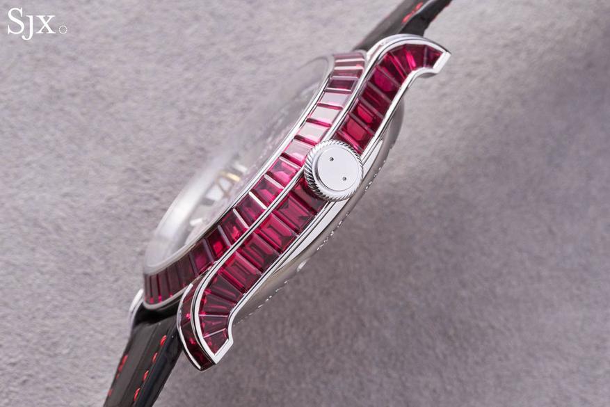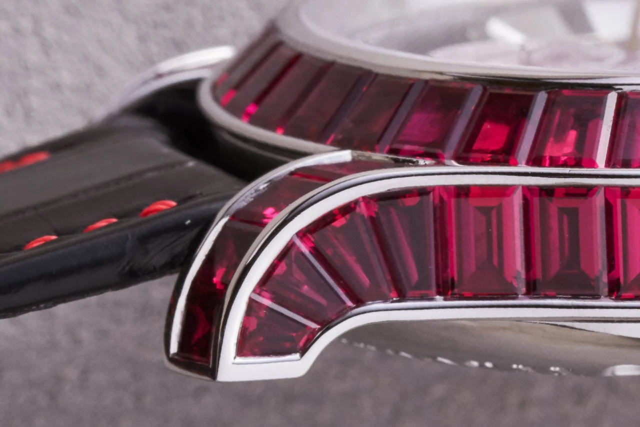 Платиновый корпус диаметром 44 мм разработан специально под размеры камней и на 2 мм больше стандартной модели. Безель украшен 40 рубинами, ушки — 16, средняя часть корпуса — 37. По заявлению производителя, рубины в средней части корпуса являются самыми крупными камнями багетной огранки, когда-либо установленными в наручных часах.