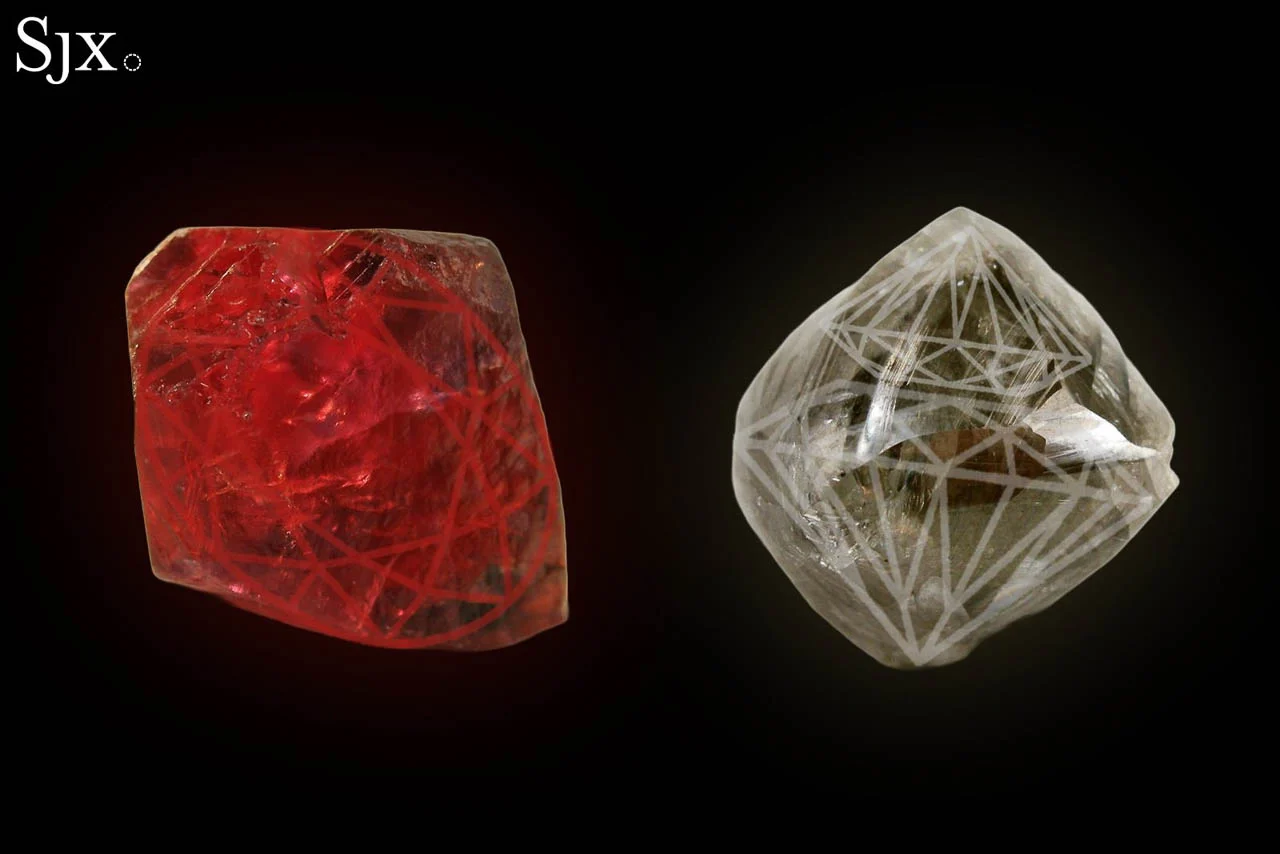 Для изготовления корпуса мастера использовали 86 карат необработанного рубина. После огранки осталось 25 карат — 61 карат материала был потерян в процессе придания камням единообразия. Все 93 рубина получили багетную огранку, нетипичную для этого минерала, кристаллическая структура которого предполагает овальную форму или форму кабошона.