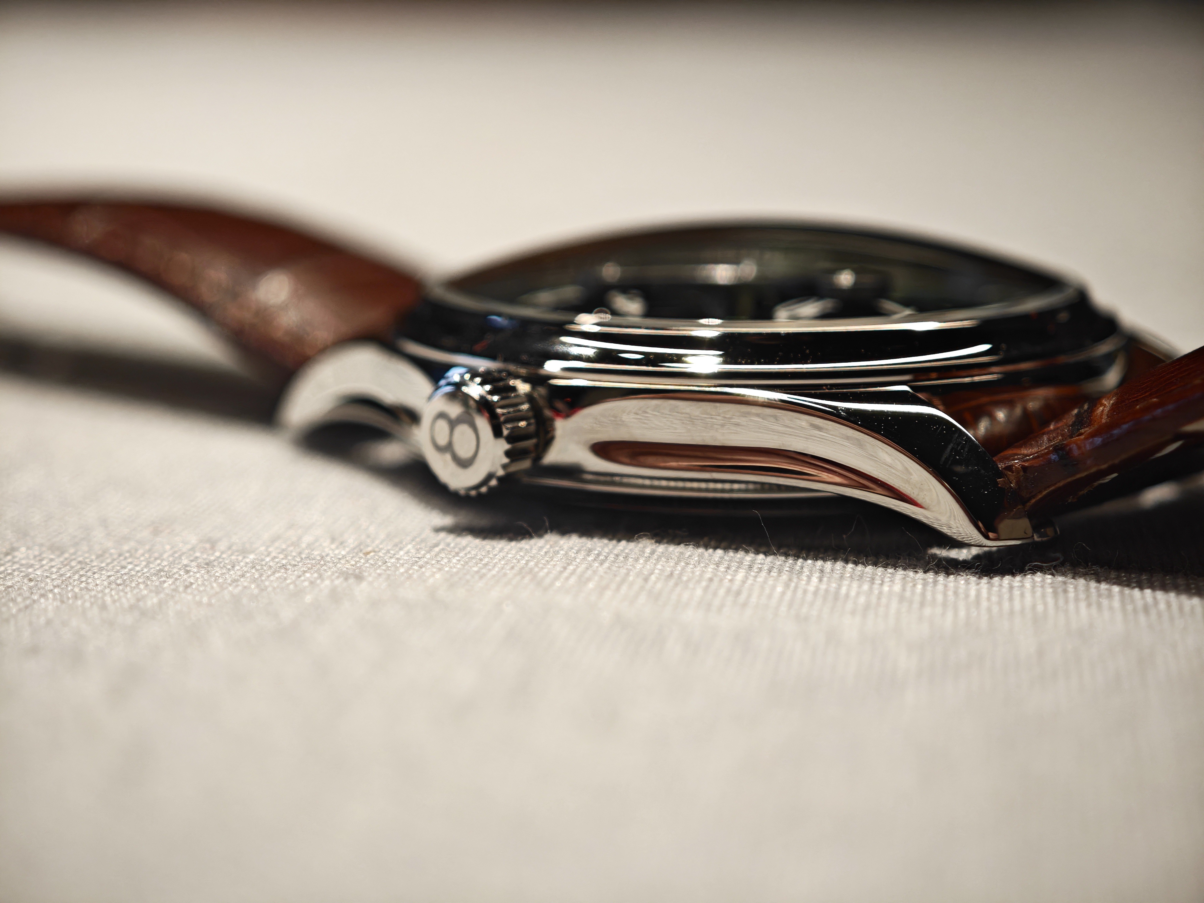 Из декоративных вставок (помимо фигурного корпуса) можно отметить лишь логотип на заводной головке, в качестве которого компания предпочла символичную цифру «8».