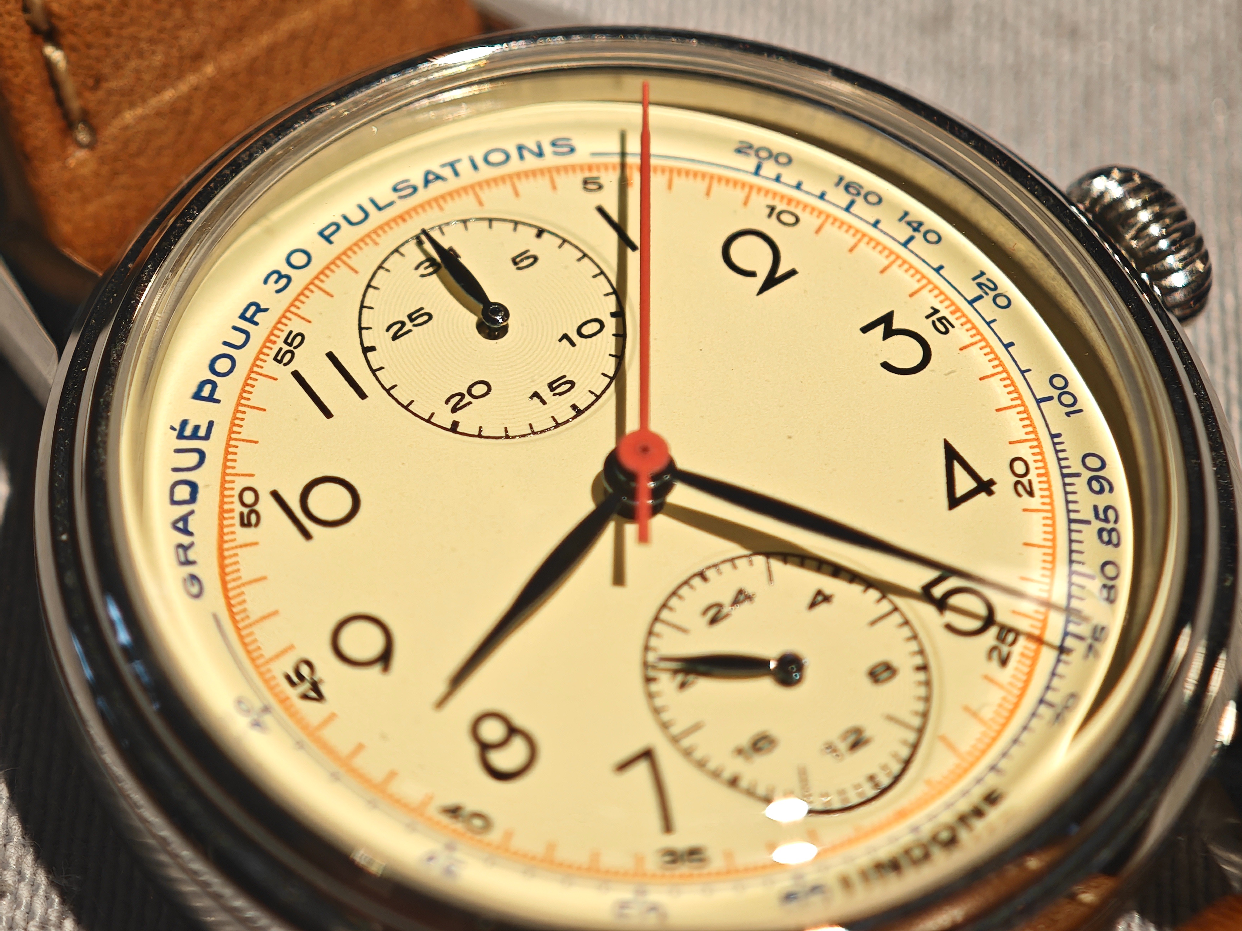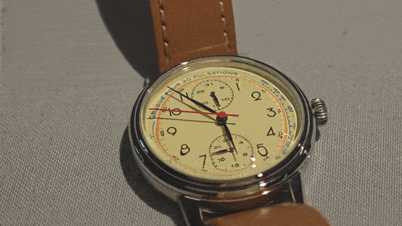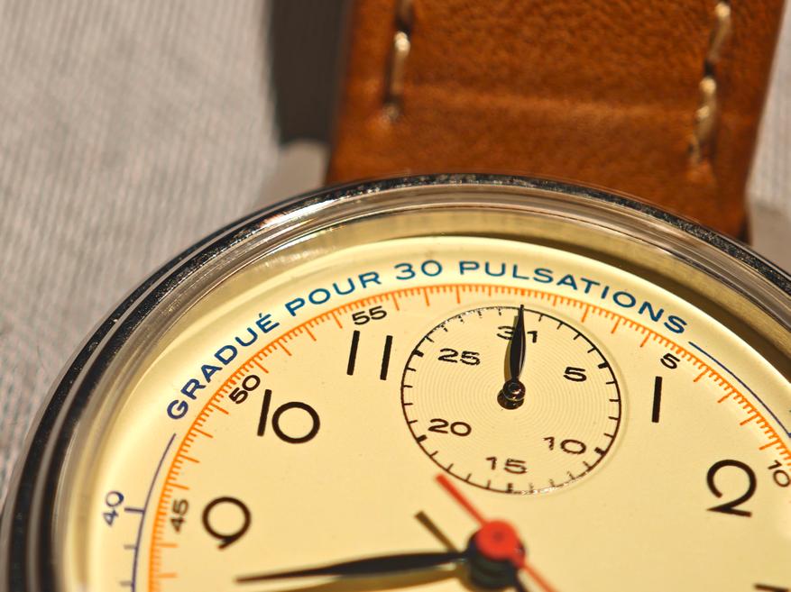 Модель имеет шкалу механического пульсометра, которая действительно отсылает к нишевым часам XX века: