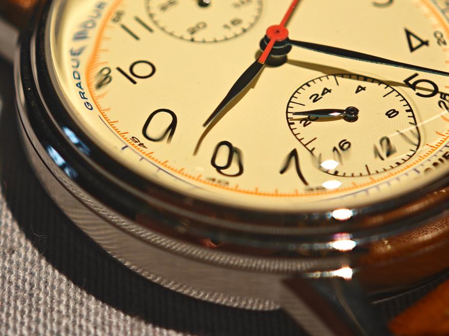 Описывая эти часы, легко поддаться тавтологии и начать к каждой особенности добавлять «винтажные». Тем не менее, здесь у нас винтажный цвет циферблата, винтажные листовидные стрелки, отчасти винтажная функциональность…