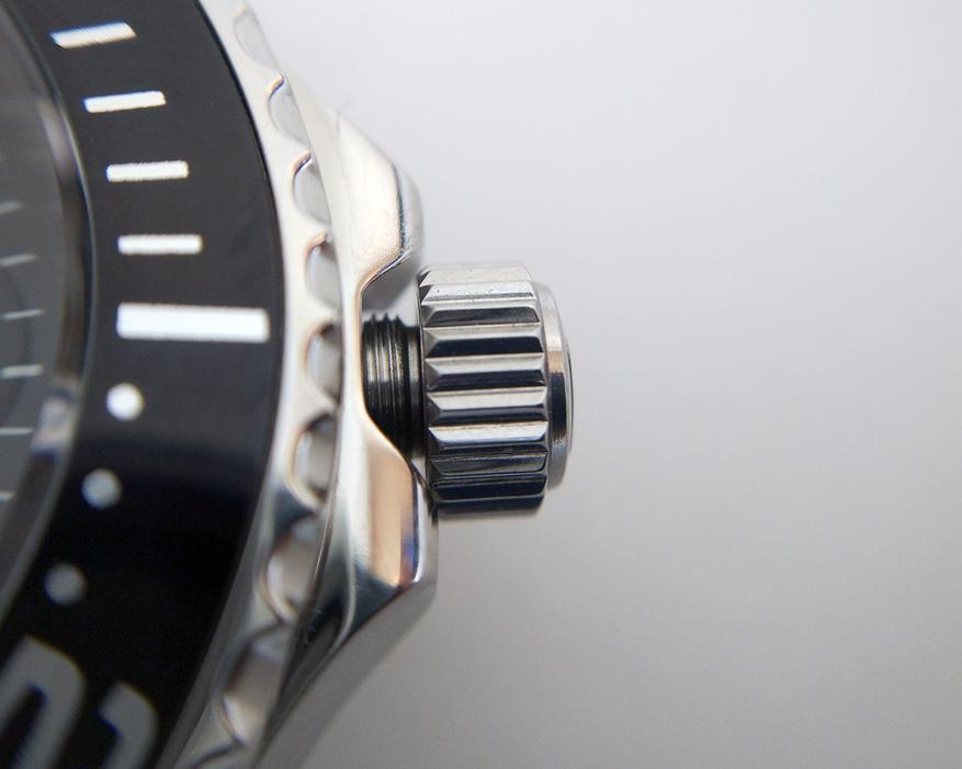 Заводная головка для обеспечения водозащиты в 200 м. закручивается на резьбу.