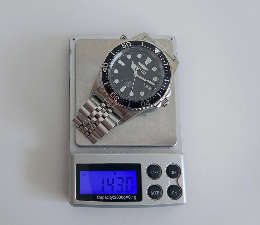 Я собираюсь убирать звенья у браслета для подгонки по руке. Поэтому предварительно взвесил часы с целым браслетом. Получилось 143 г.